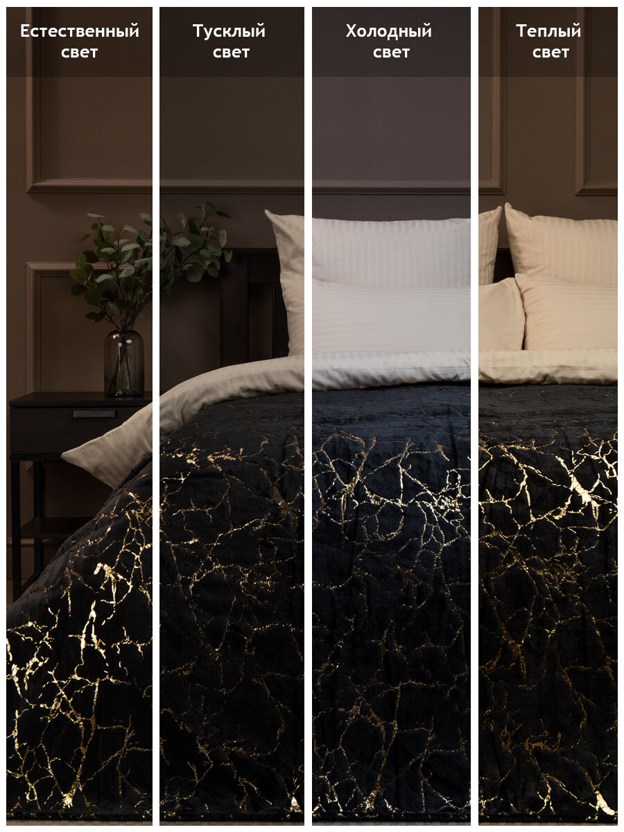 Плед TexRepublic Shick 200х220 см Евро, покрывало велсофт, черный, мягкий, плюшевый с рисунком мрамор интересное: