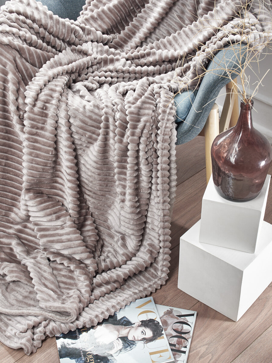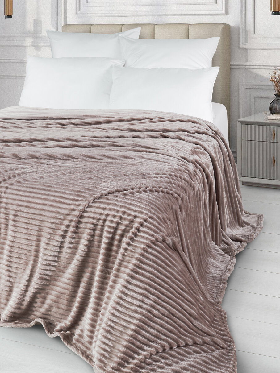 Купить Плед-покрывало "Stretch Jersy" 200 x 220, мягкий и теплый, велсофт, какао