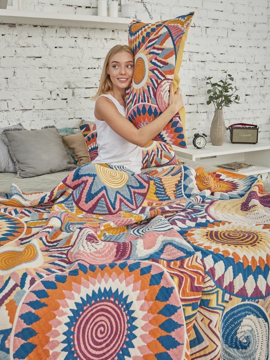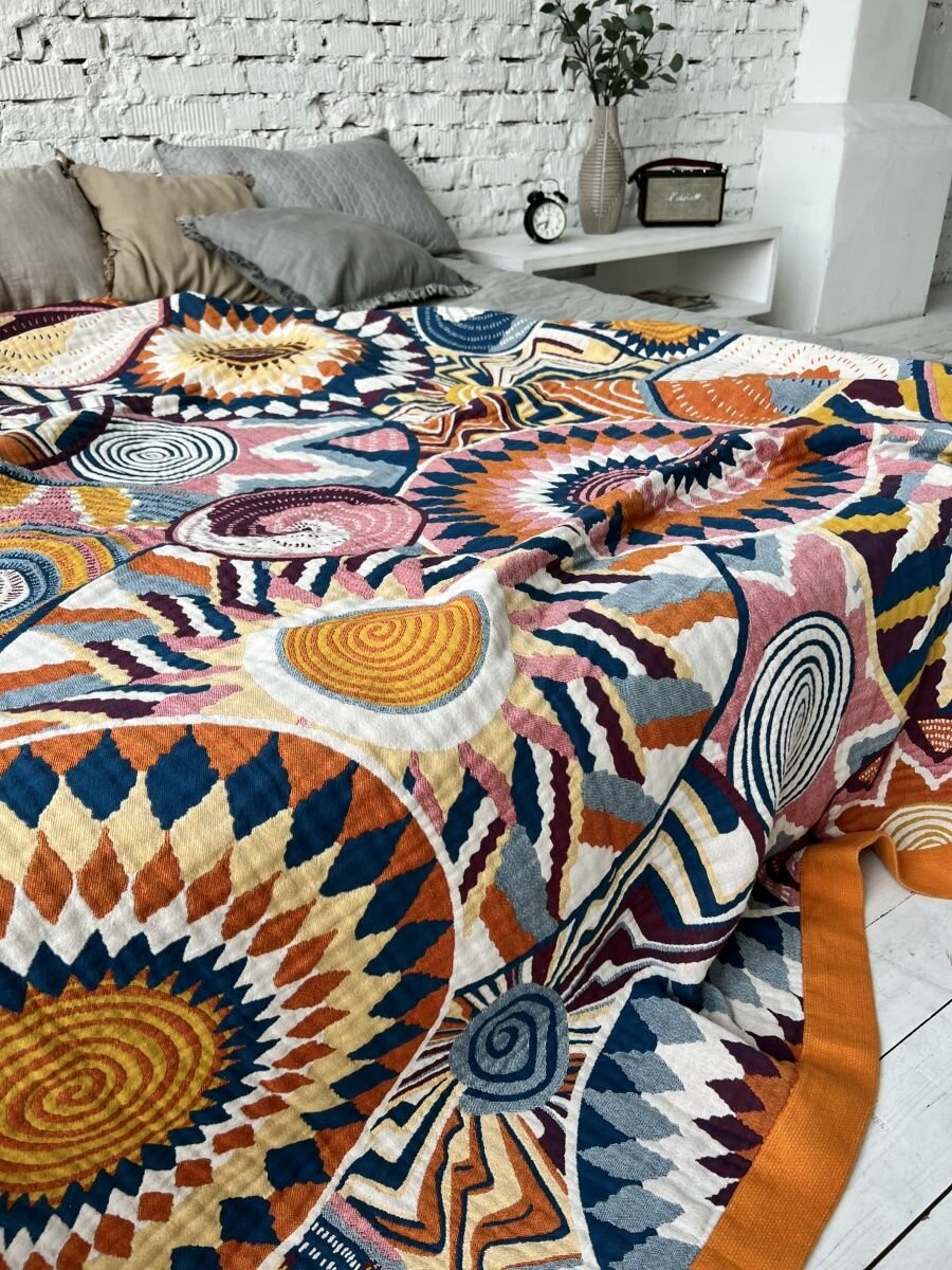 СохранитьПокрывало на кровать Sundelica Плед 230х250 см "Солнечный орнамент" Хлопок Муслиновое одеяло интересное: