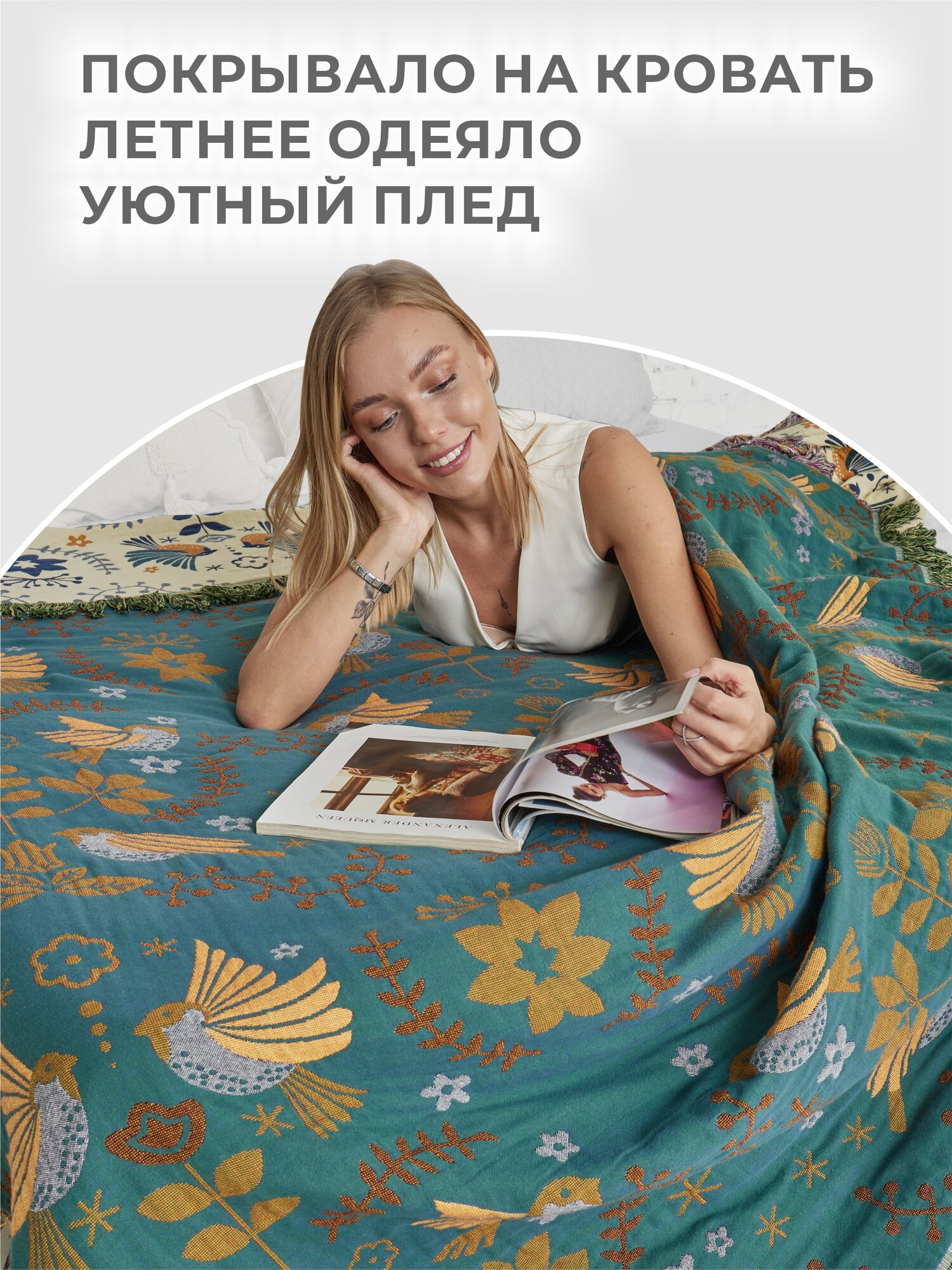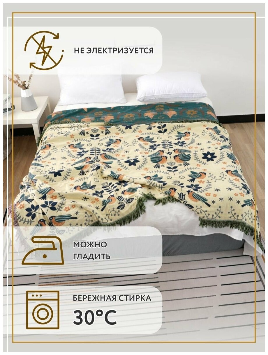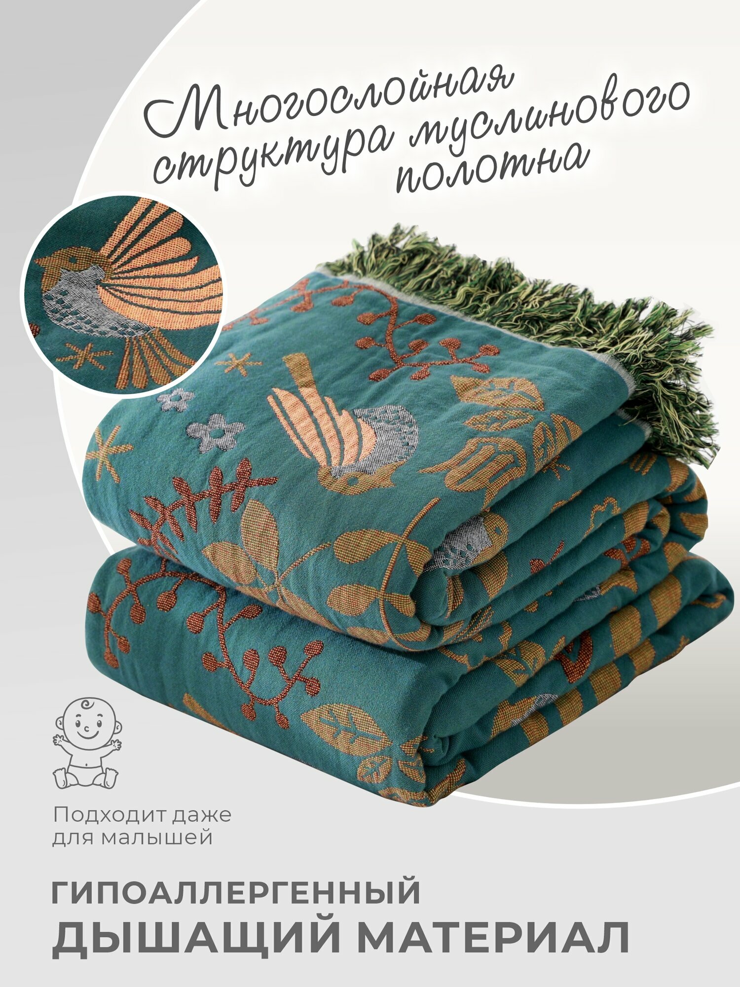 Покрывало на кровать Плед 200х230 "Птицы" Хлопок Муслиновое одеяло