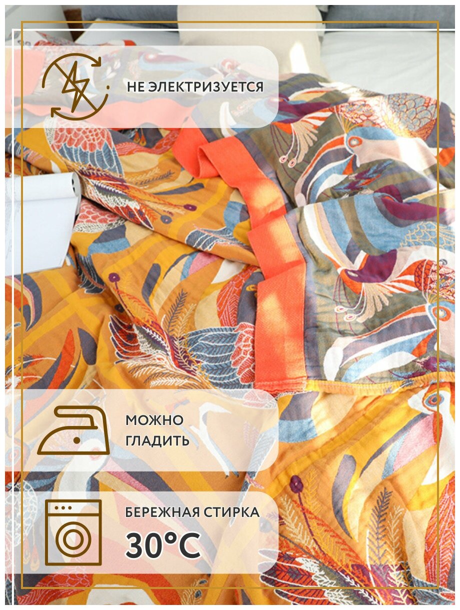 Покрывало на кровать Плед 200х230 "Птицы" Хлопок Муслиновое одеяло