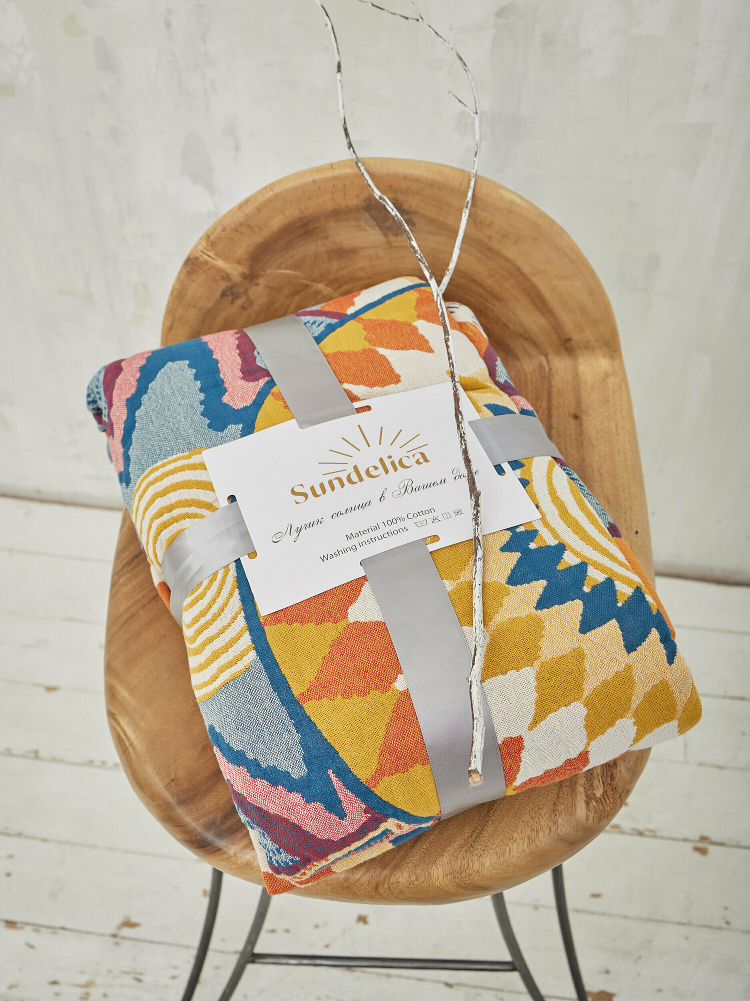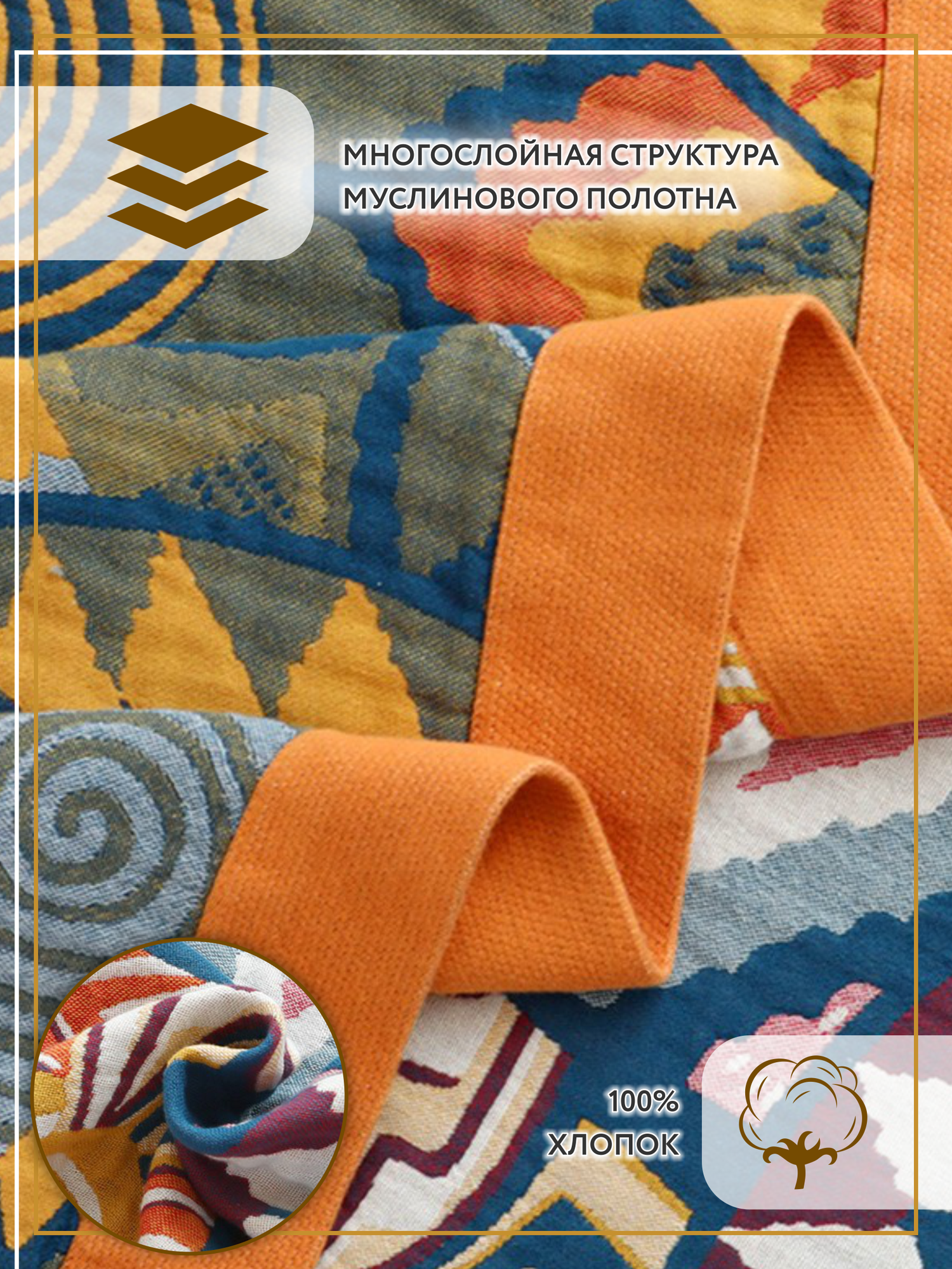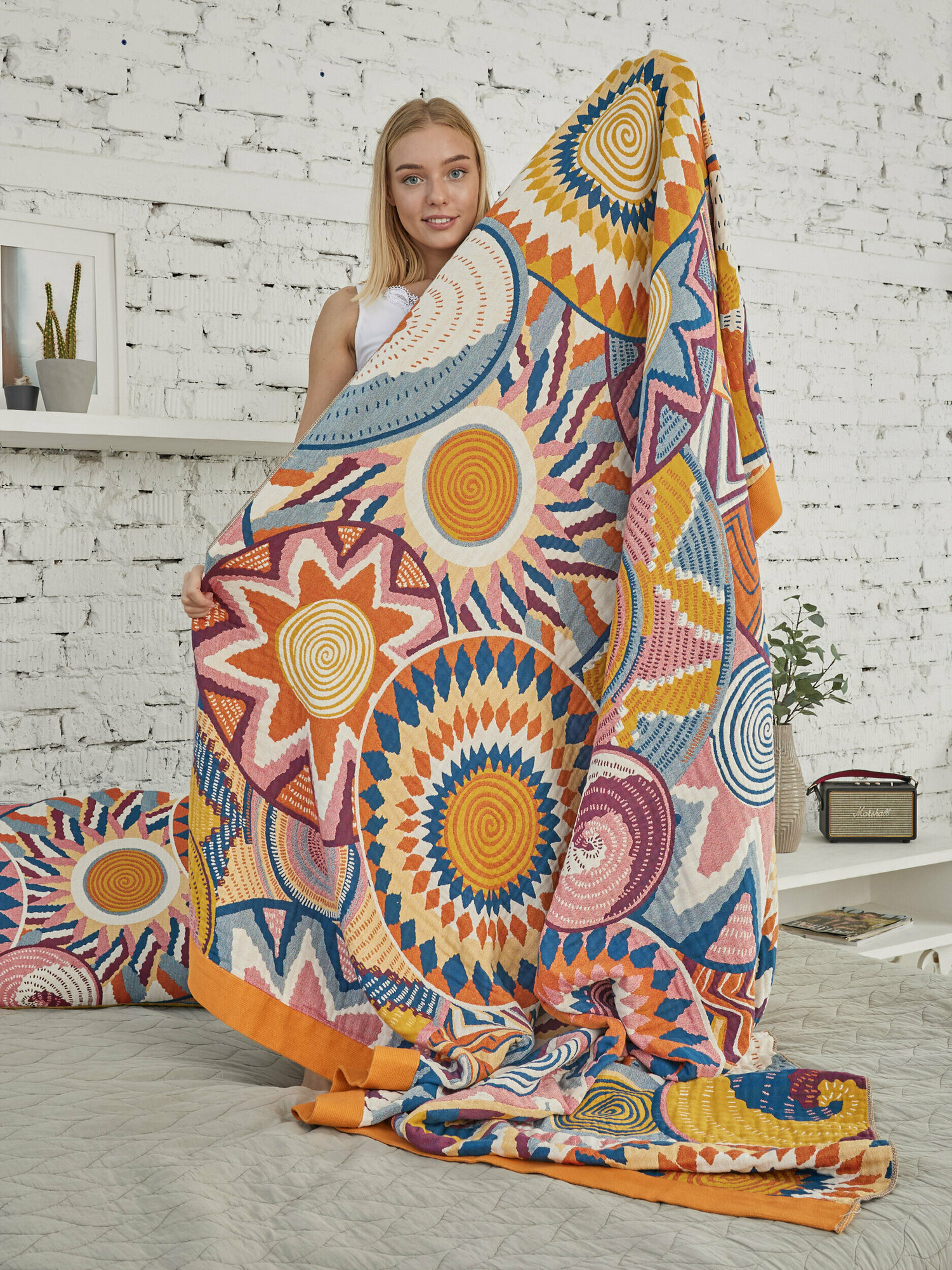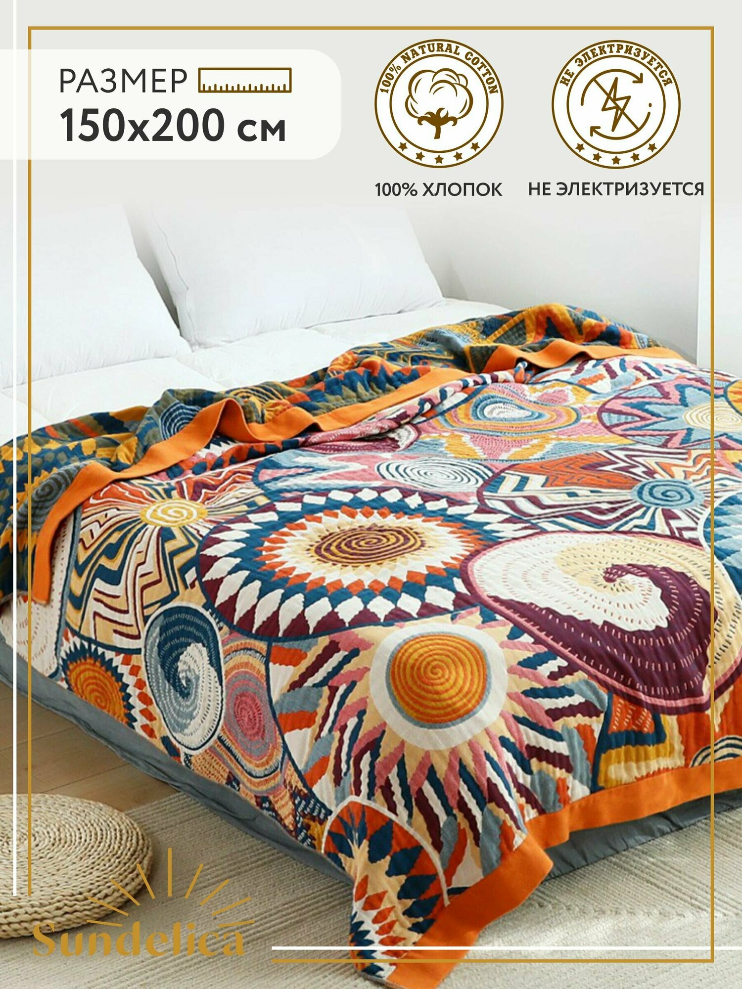 Купить Покрывало на кровать Sundelica Плед 150х200 "Солнечный орнамент" Хлопок Муслиновое одеяло