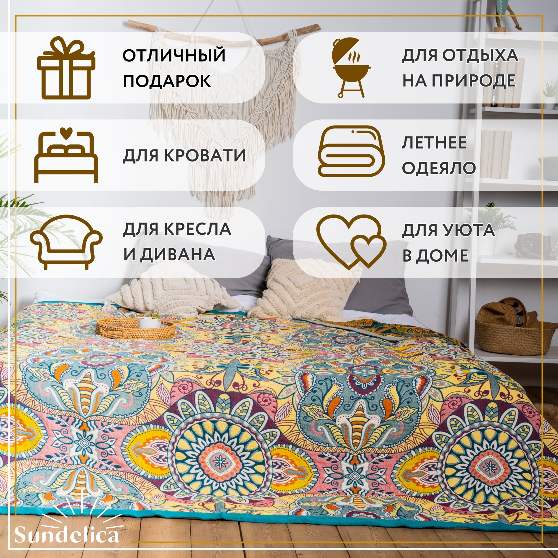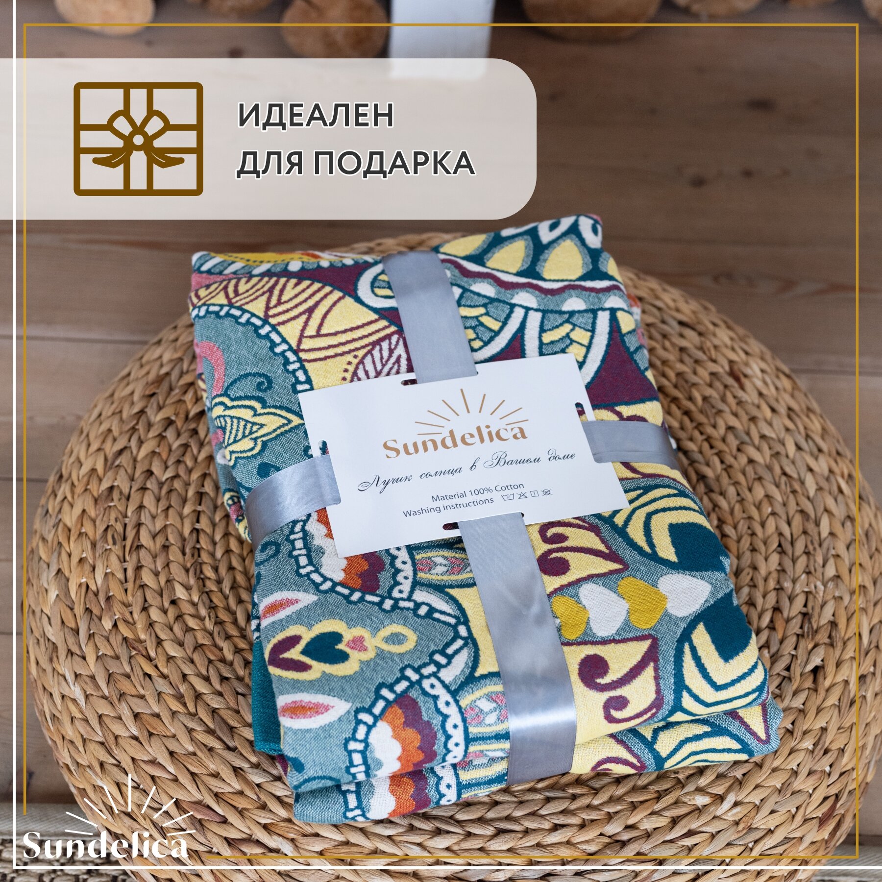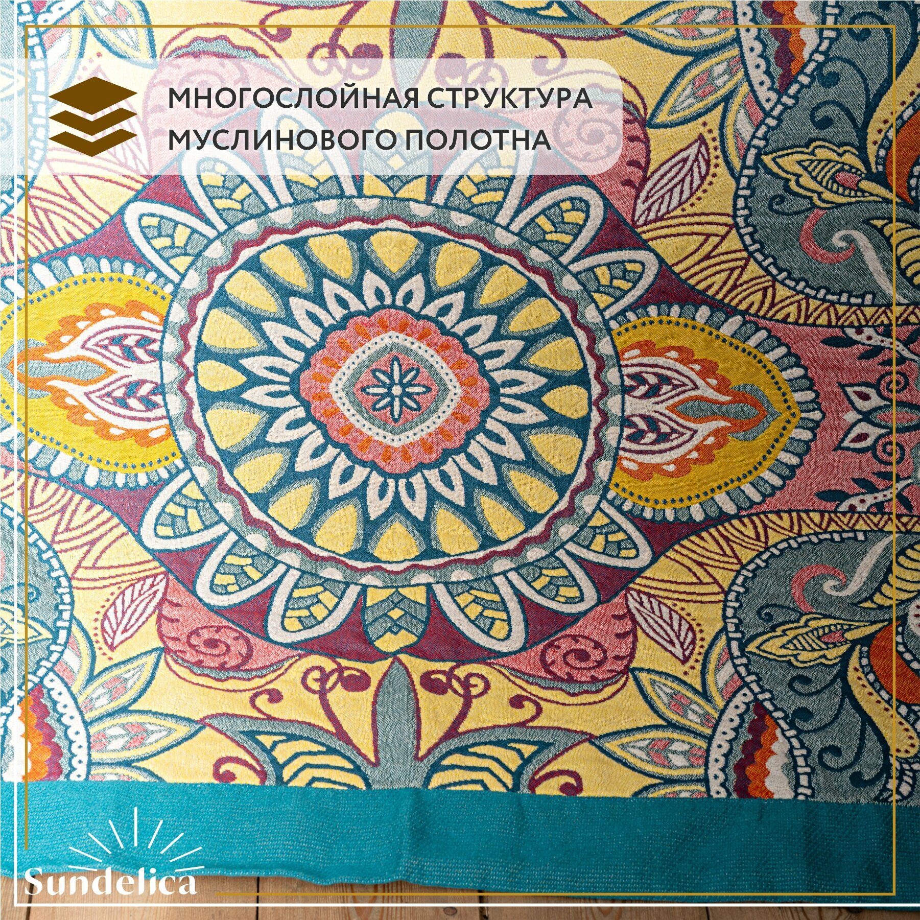 Покрывало на кровать Sundelica Плед 150х200 "Солнечный орнамент" Хлопок Муслиновое одеяло