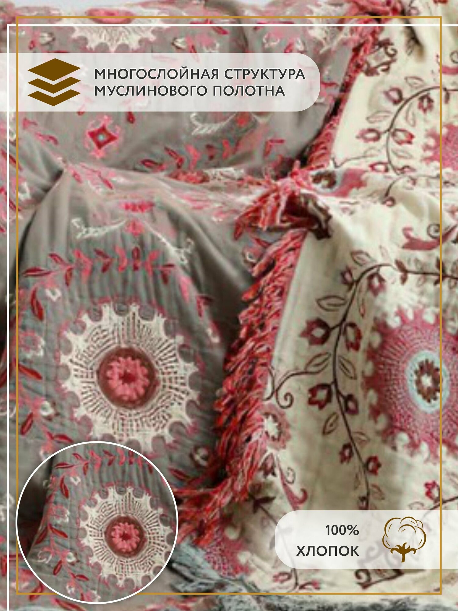 Покрывало на кровать Sundelica Плед 150х200 "Солнечный орнамент" Хлопок Муслиновое одеяло
