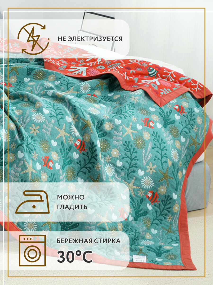 СохранитьПокрывало на кровать Sundelica Плед 200х230 "Морская бирюза" Хлопок Муслиновое одеяло интересное: