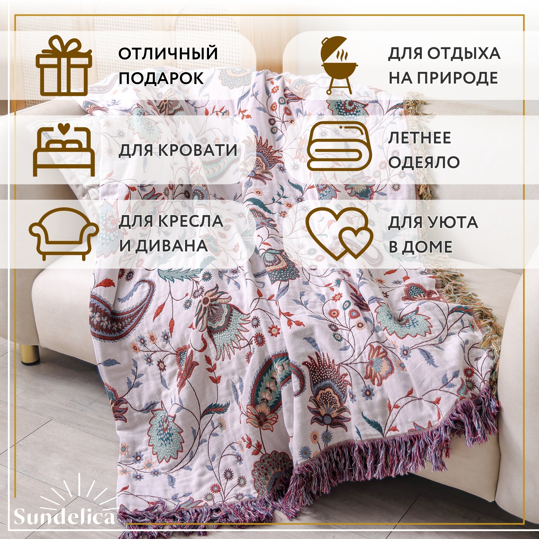 Покрывало на кровать Sundelica 1,5 спальное плед на диван хлопок 100% Муслиновое одеяло летнее