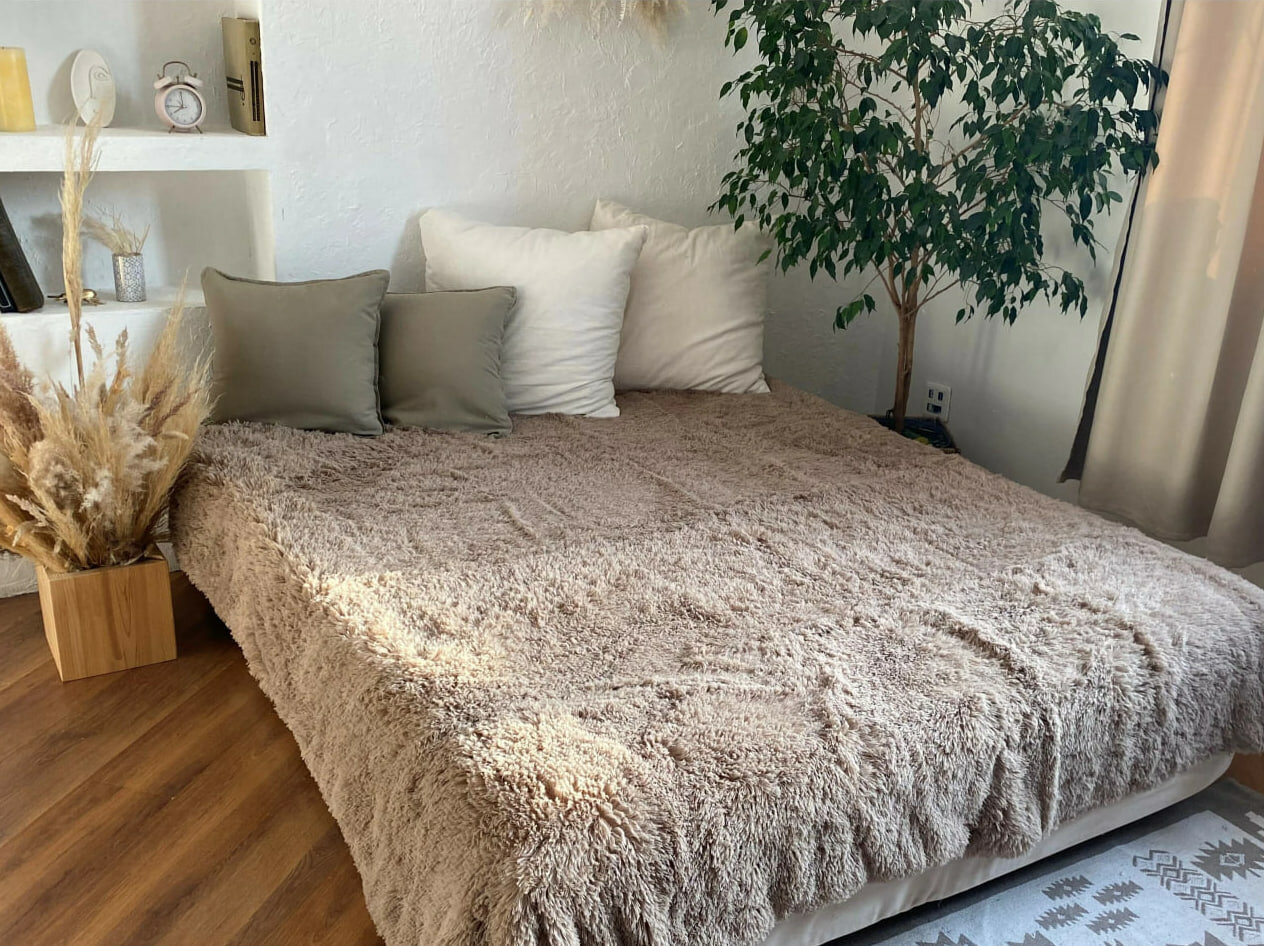 Плед "Травка" 220 х 200 бамбук/мех, евромакс, бежевый интересное: