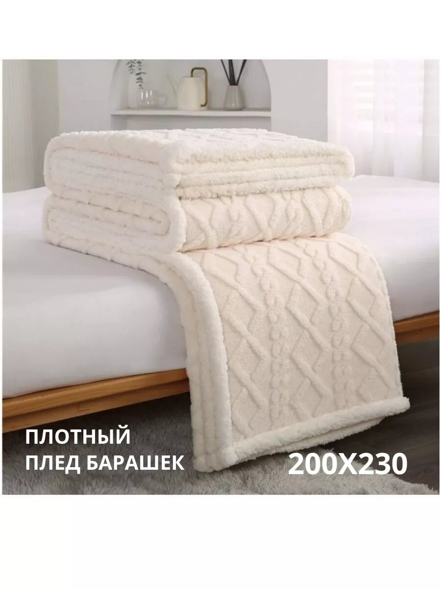 Плед шерстяной , барашка евро 200*230 белый текстурный