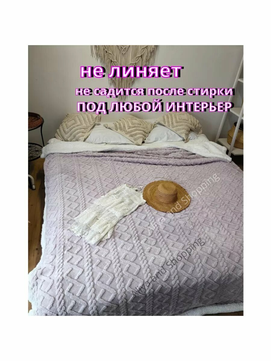 Купить Плед шерстяной , барашка евро 200*230 светло-сиреневый