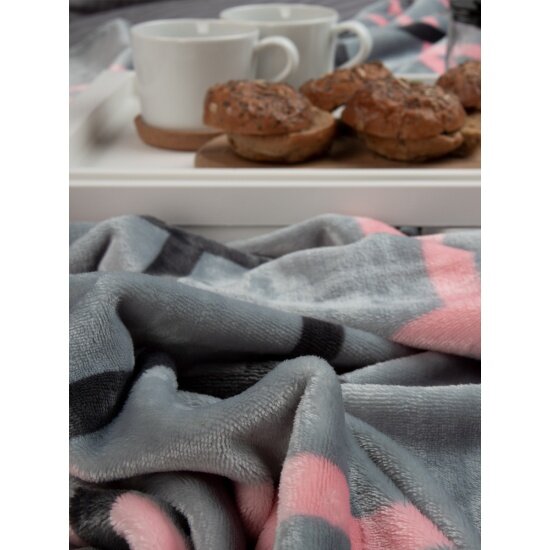 Купить Плед Texrepublic Absolute клетка фланель, 150х200, серый розовый (26224)