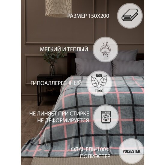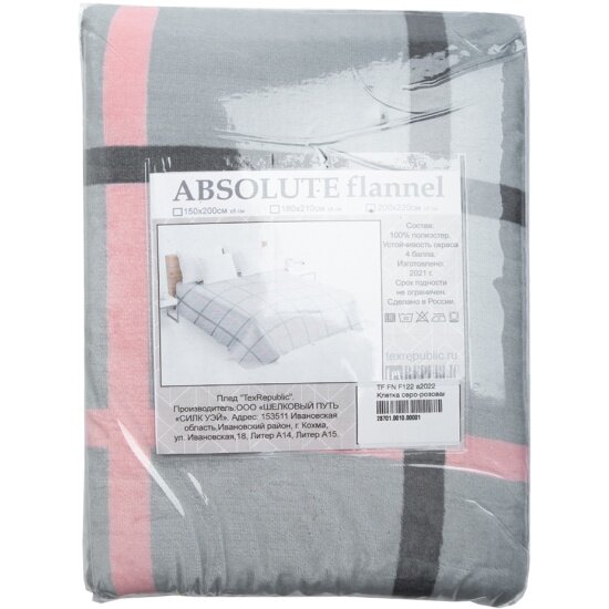 Плед Texrepublic Absolute клетка фланель, 150х200, серый розовый (26224) интересное: