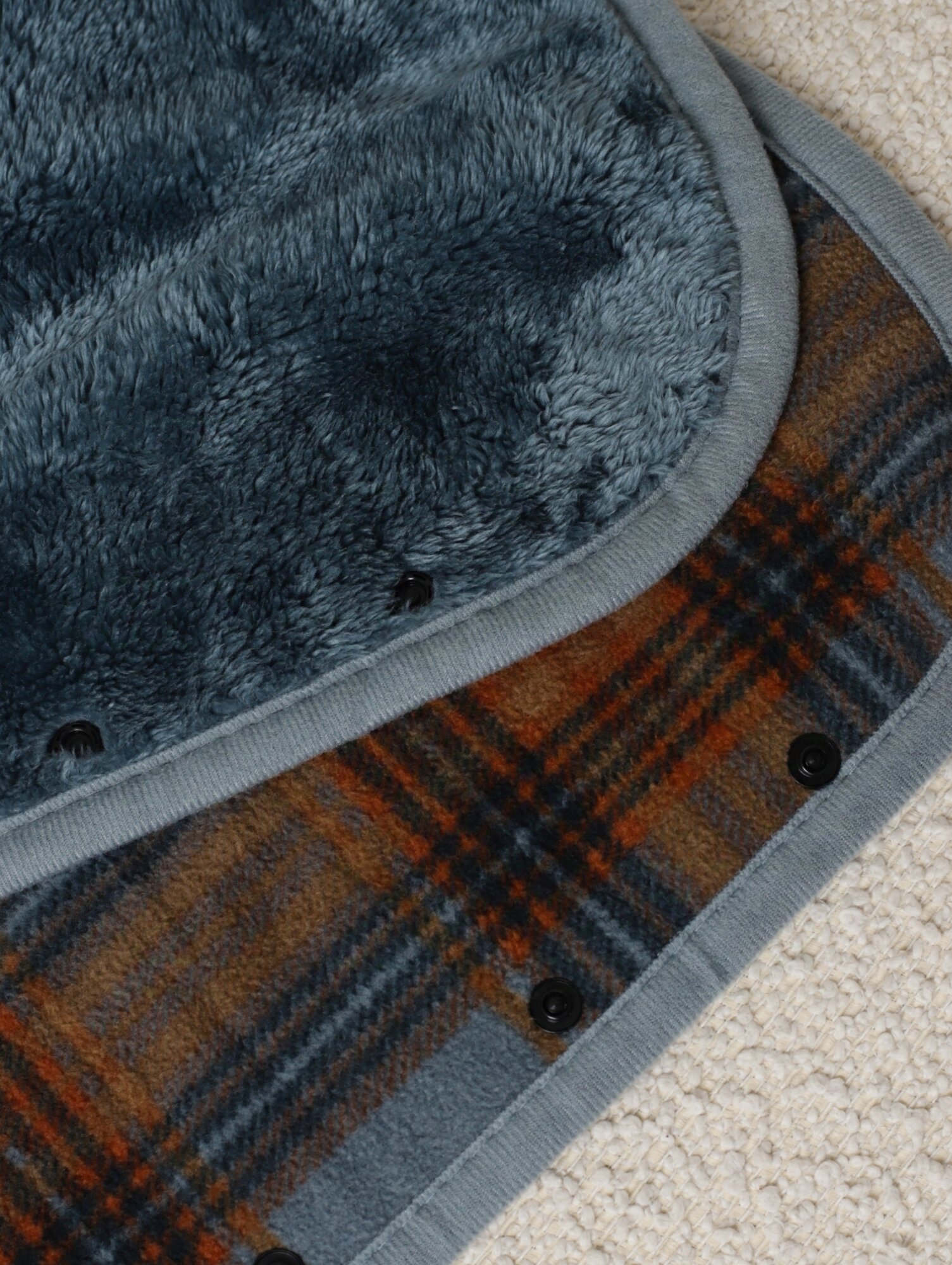 Плед Бриол 130х80 см, клетка, серо-синий, искусственный мех, накидка пончо на кнопках