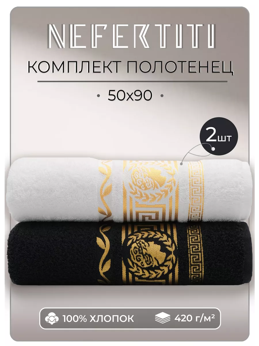 Полотенца махровые "Версачи" 50x90см 2 штуки черный, белый интересное:
