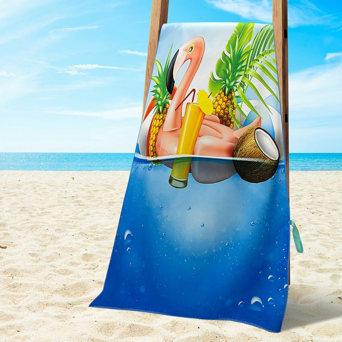 Купить Пляжное полотенце из микрофибры Фламинго, размер 70х140, 100% полиэстер