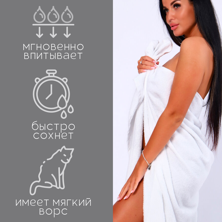 СохранитьПолотенце банное махровое 100% хлопок Софатекс 100х150 для ванны и душа, цвет белый интересное:
