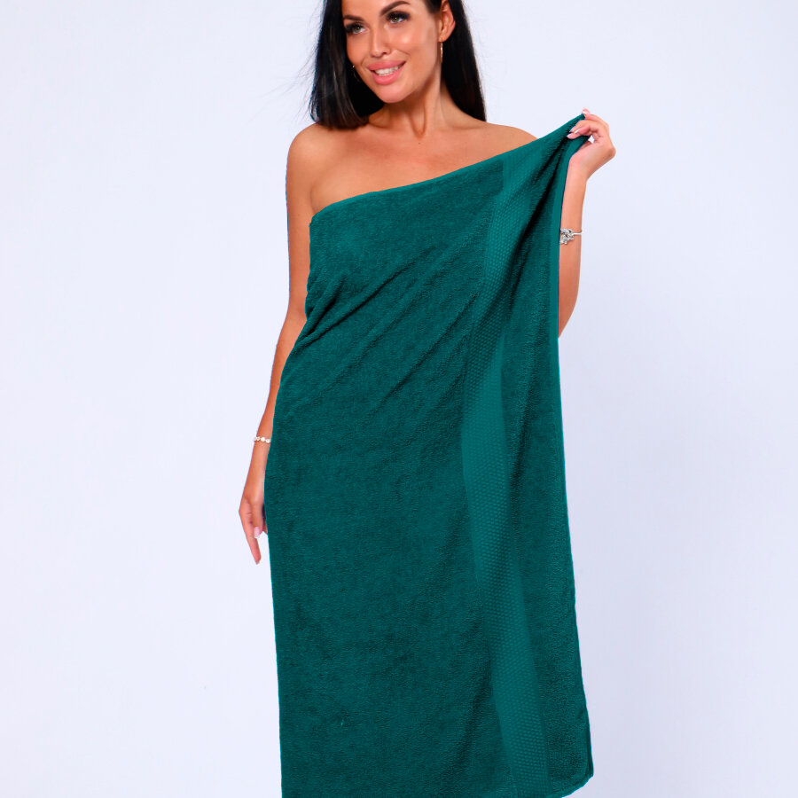 СохранитьПолотенце банное махровое 100% хлопок Софатекс 100х150 для ванны и душа, цвет темно-зеленый интересное: