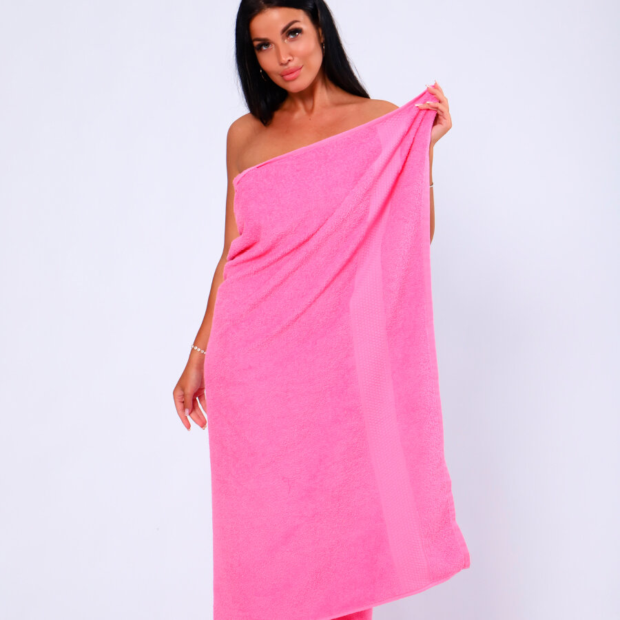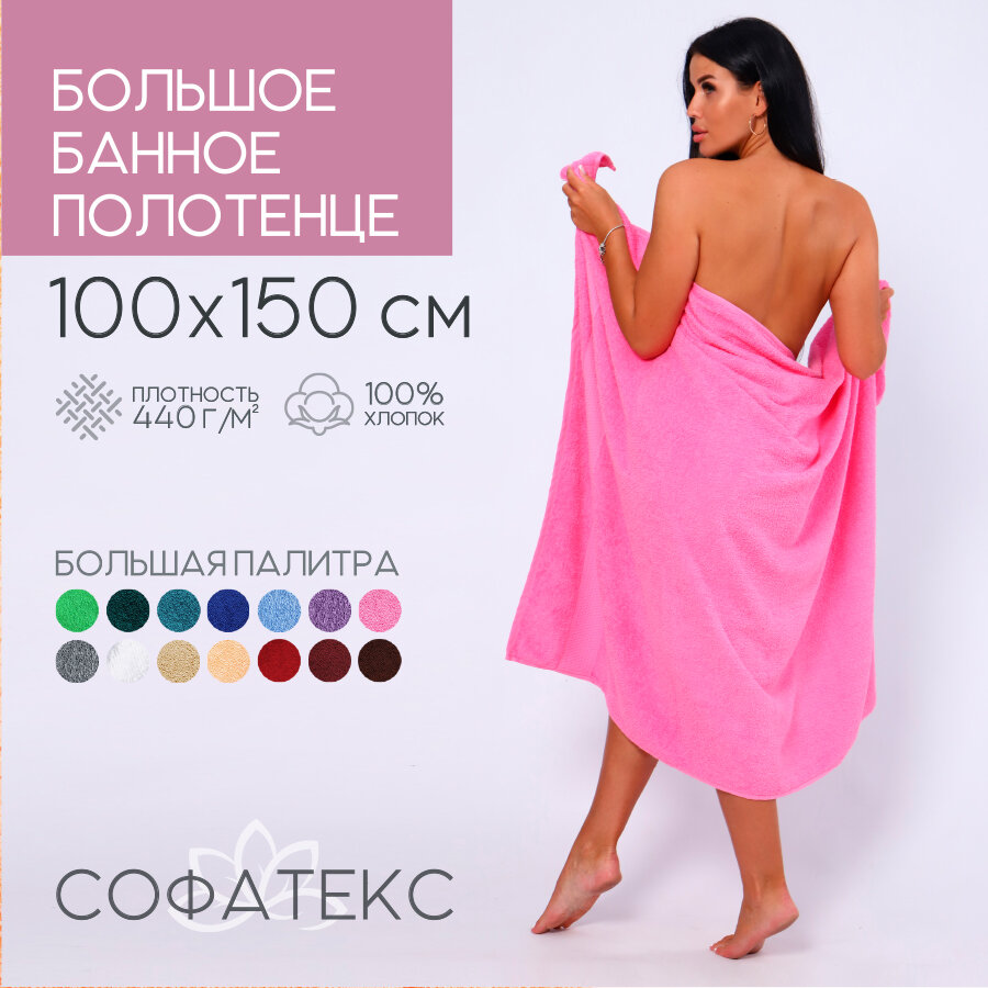СохранитьПолотенце банное махровое 100% хлопок Софатекс 100х150 для ванны и душа, цвет розовый интересное:
