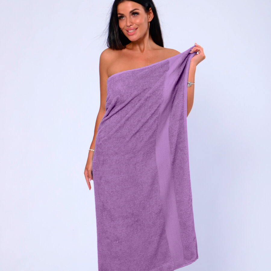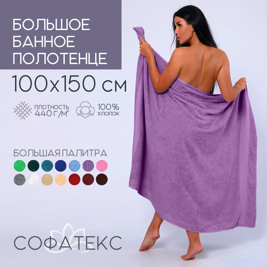 Купить Полотенце банное махровое 100% хлопок Софатекс 100х150 для ванны и душа, цвет сиреневый