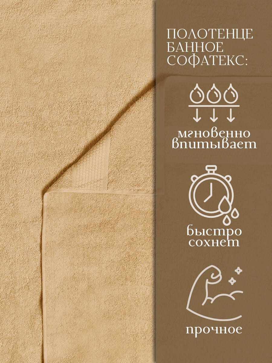 СохранитьПолотенце банное махровое 100%хлопок Софатекс 100х150 для ванны и душа, цвет бежевый интересное: