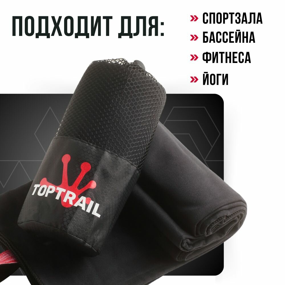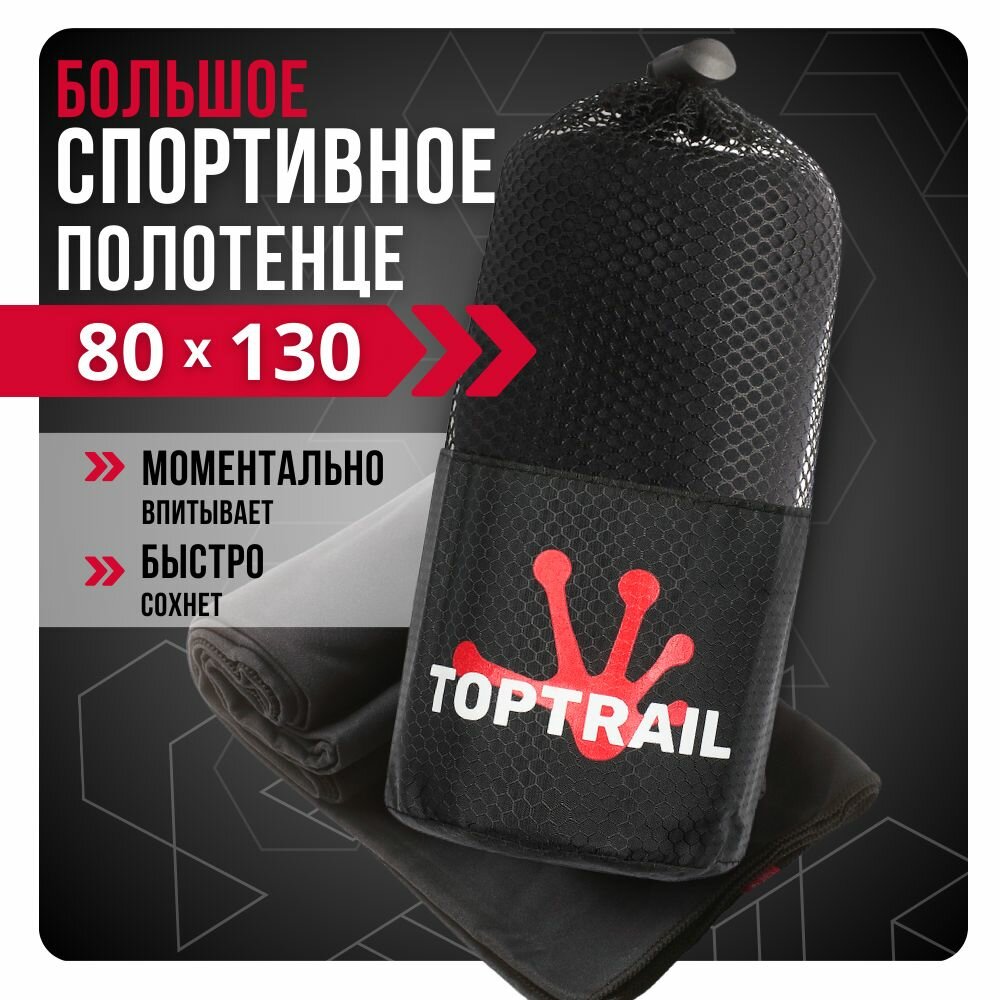 Купить Полотенце спортивное из микрофибры TOPTRAIL, 80 х 130, черное, для бассейна / пляжное / банное