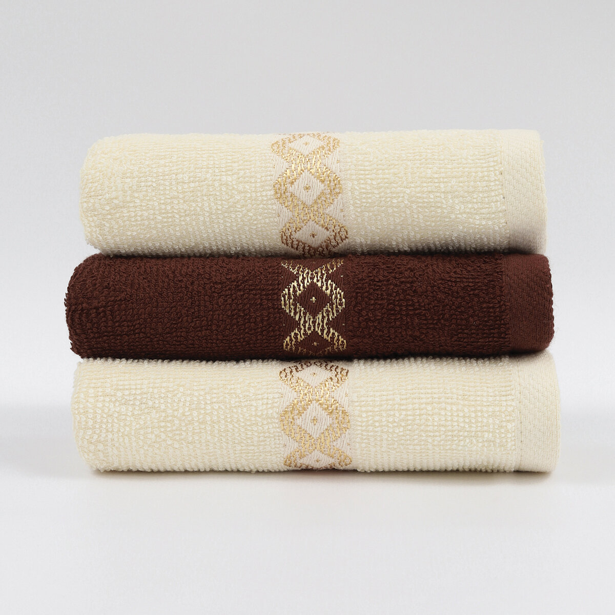 Купить Набор № 3311 махровых полотенец Кремовый+коричневый 3 шт (30x60 3 шт)