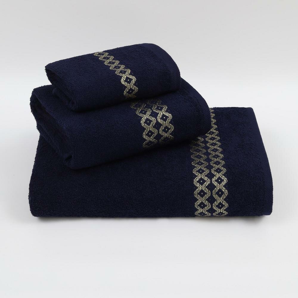 Купить Набор махровых полотенец № 2707 Блеск темно-синий 3 шт (30х60 1 шт, 50х80 1 шт,70х130 1 шт)