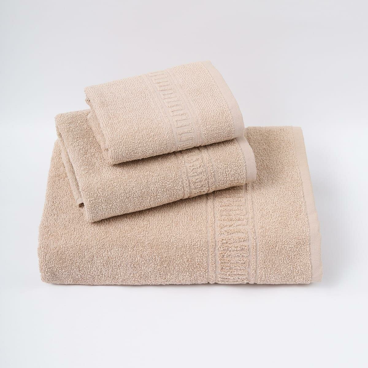 Купить Набор махровых полотенец № 2703 Орнамент бежевый 3 шт (30х60 1 шт, 50х80 1 шт,70х130 1 шт)