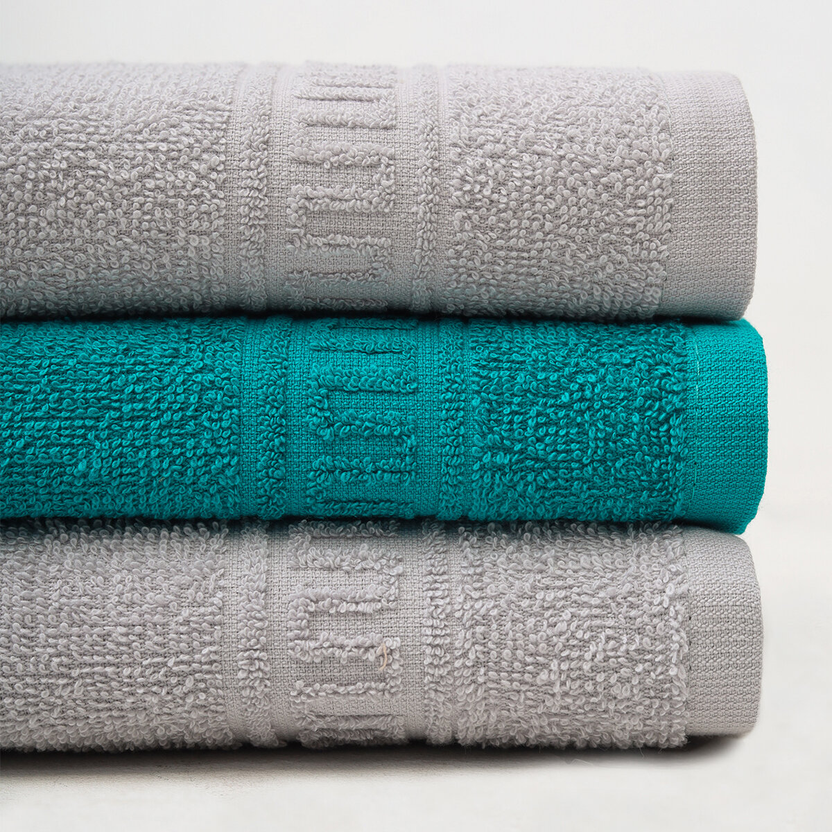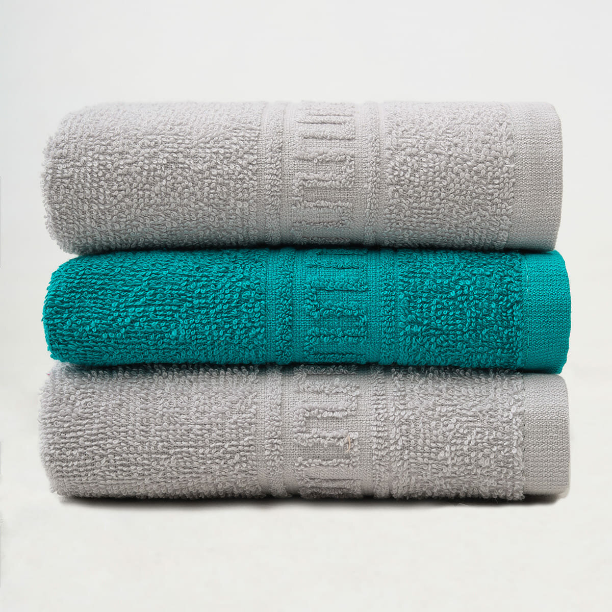 Набор № 2618 махровых полотенец Серый+темно-синий+морская волна 3 шт (50x80 3 шт)