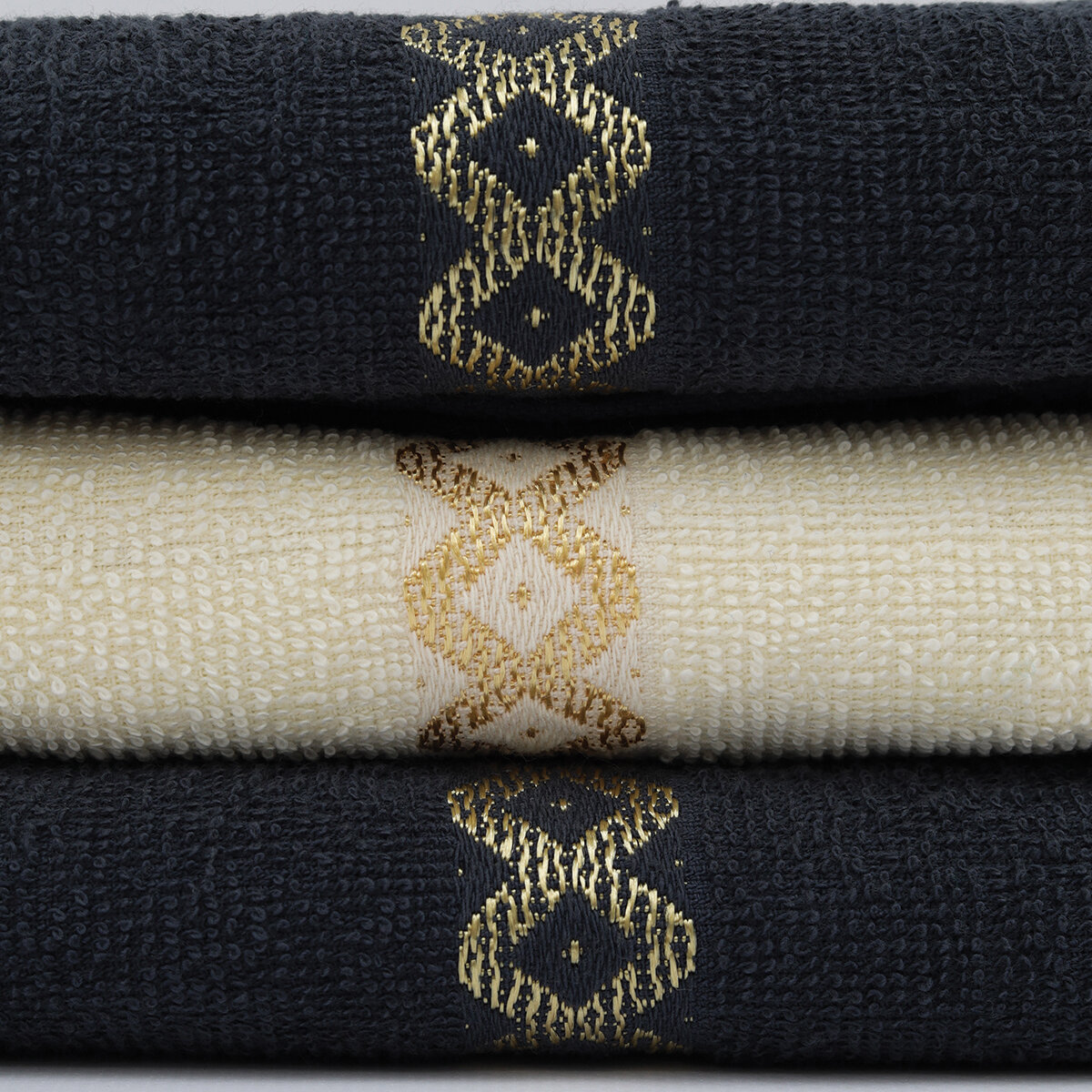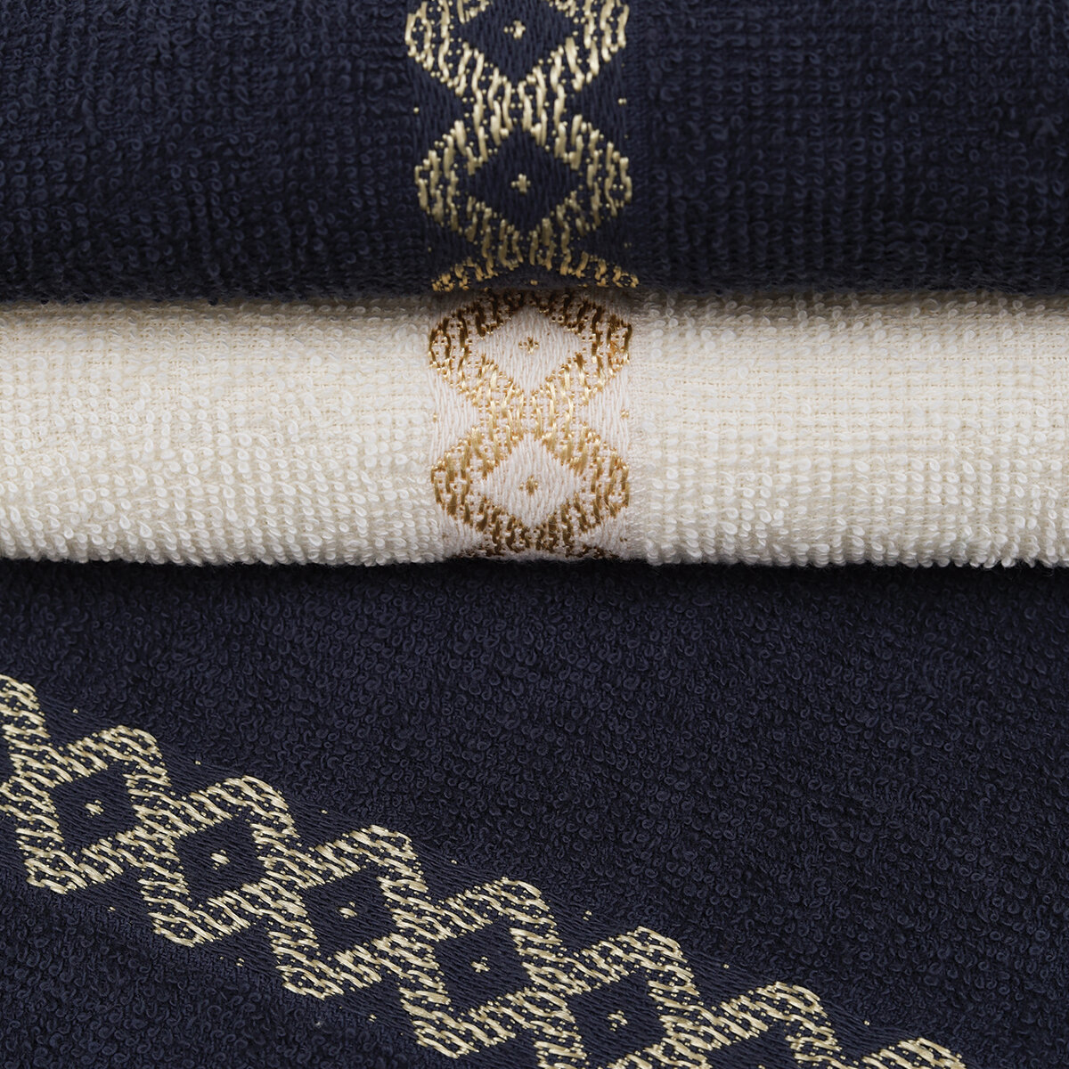 Набор № 2619 махровых полотенец Крем+темно-синий+сирень 3 шт (50x80 3 шт)