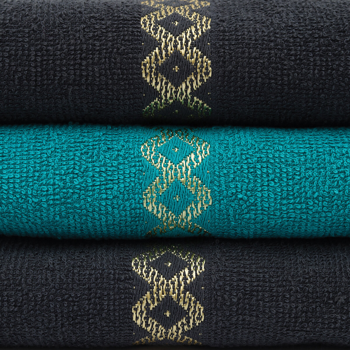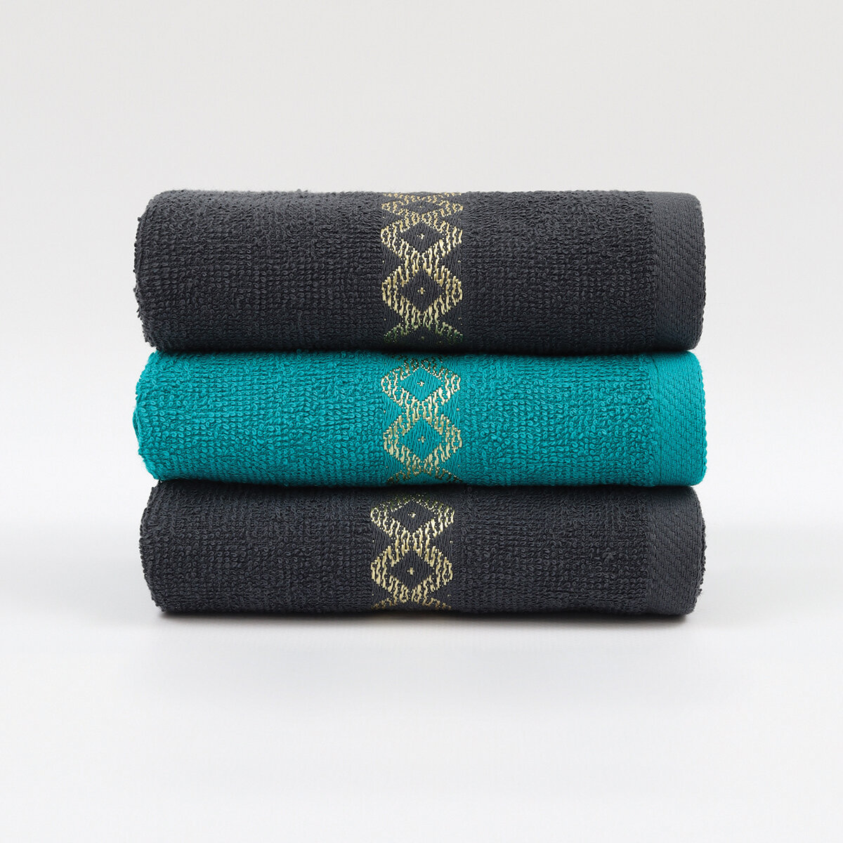 Набор № 2618 махровых полотенец Серый+темно-синий+морская волна 3 шт (50x80 3 шт)