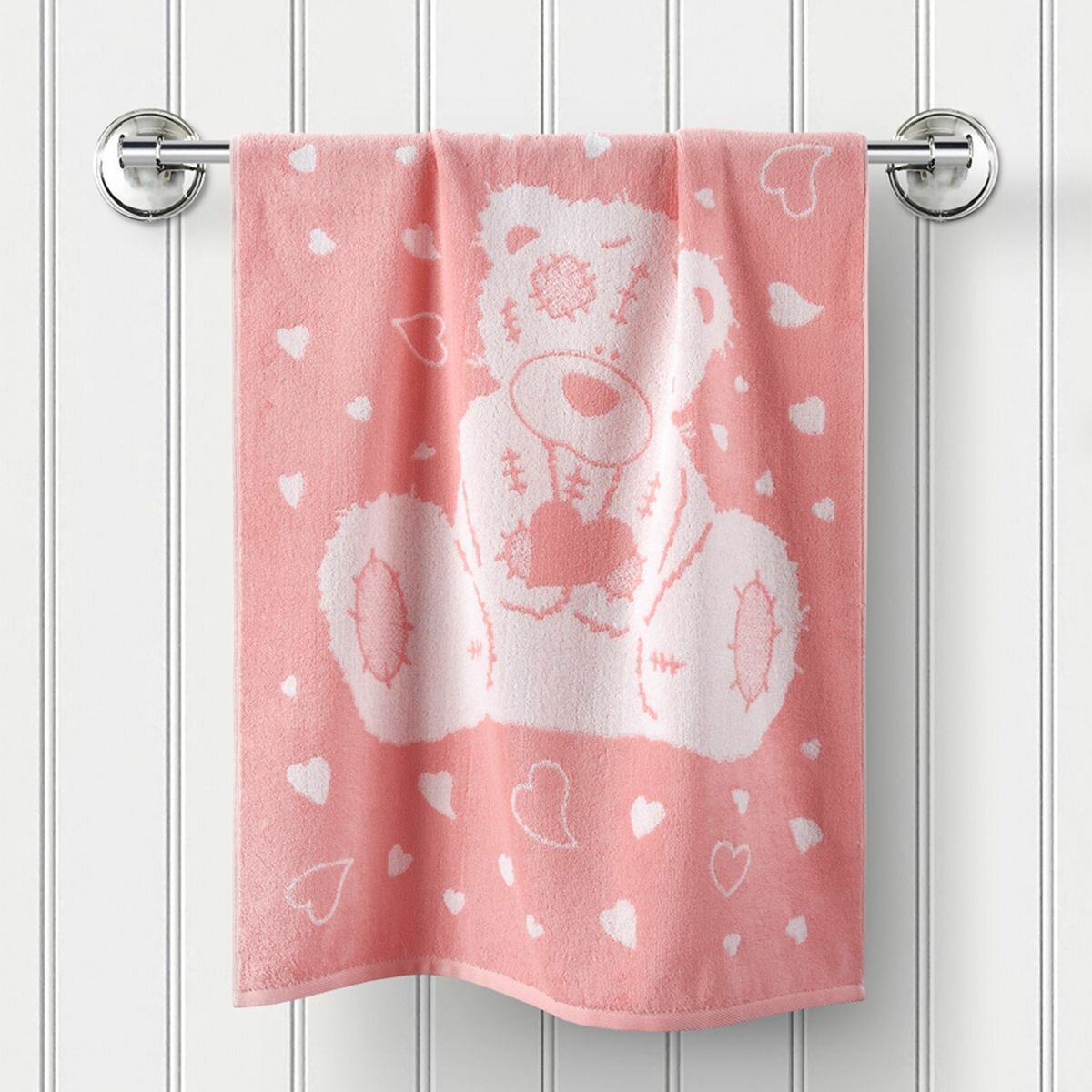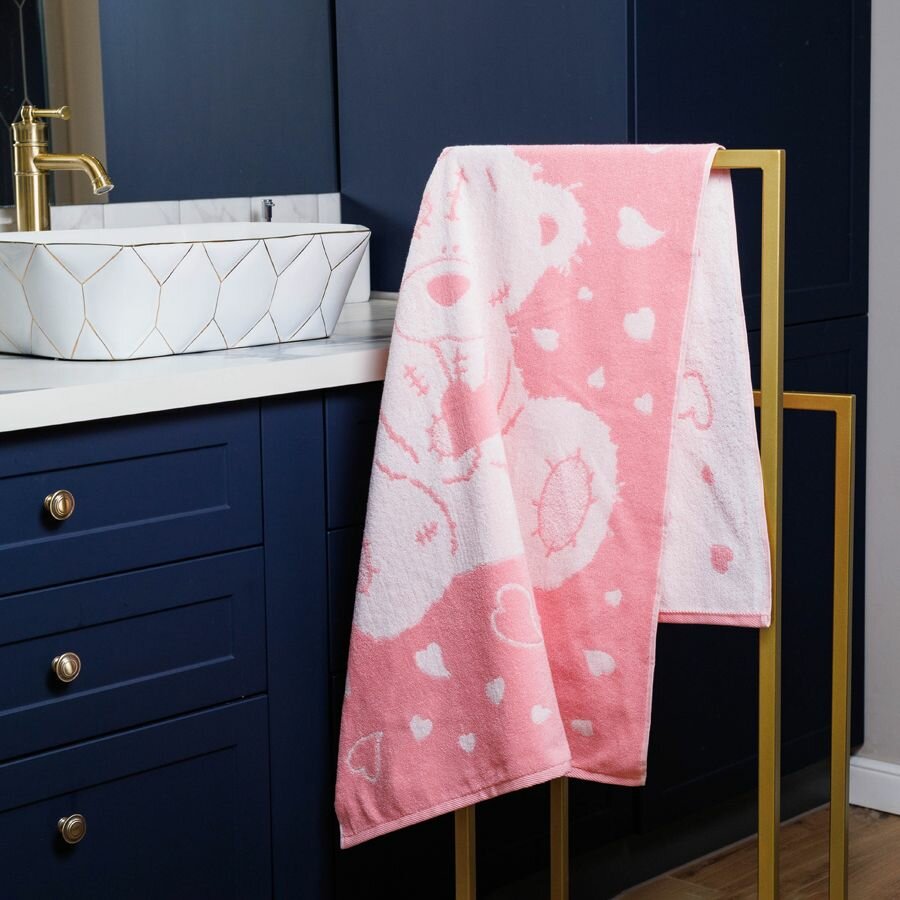 Новогоднее Полотенце махровое, Guten Morgen 1 шт, 50х90, Тедди, Цвет: Розовый, хлопок 100%, 450 г/м2 подарок