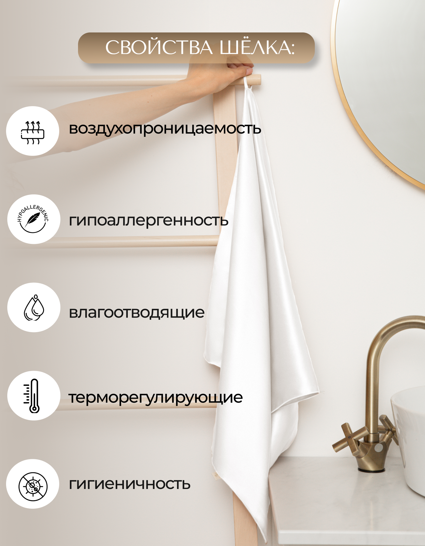Шелковое полотенце для тела и волос, однослойное, 55х100см. A.M.Silk интересное: