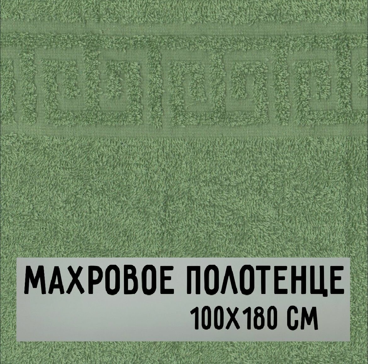 Полотенце банное махровое салатовый с греческим бардюром 70х140 см / Плотность 430 гр/м2 / 100% хлопок / Подарок / Ашхабадский текстильный комплекс