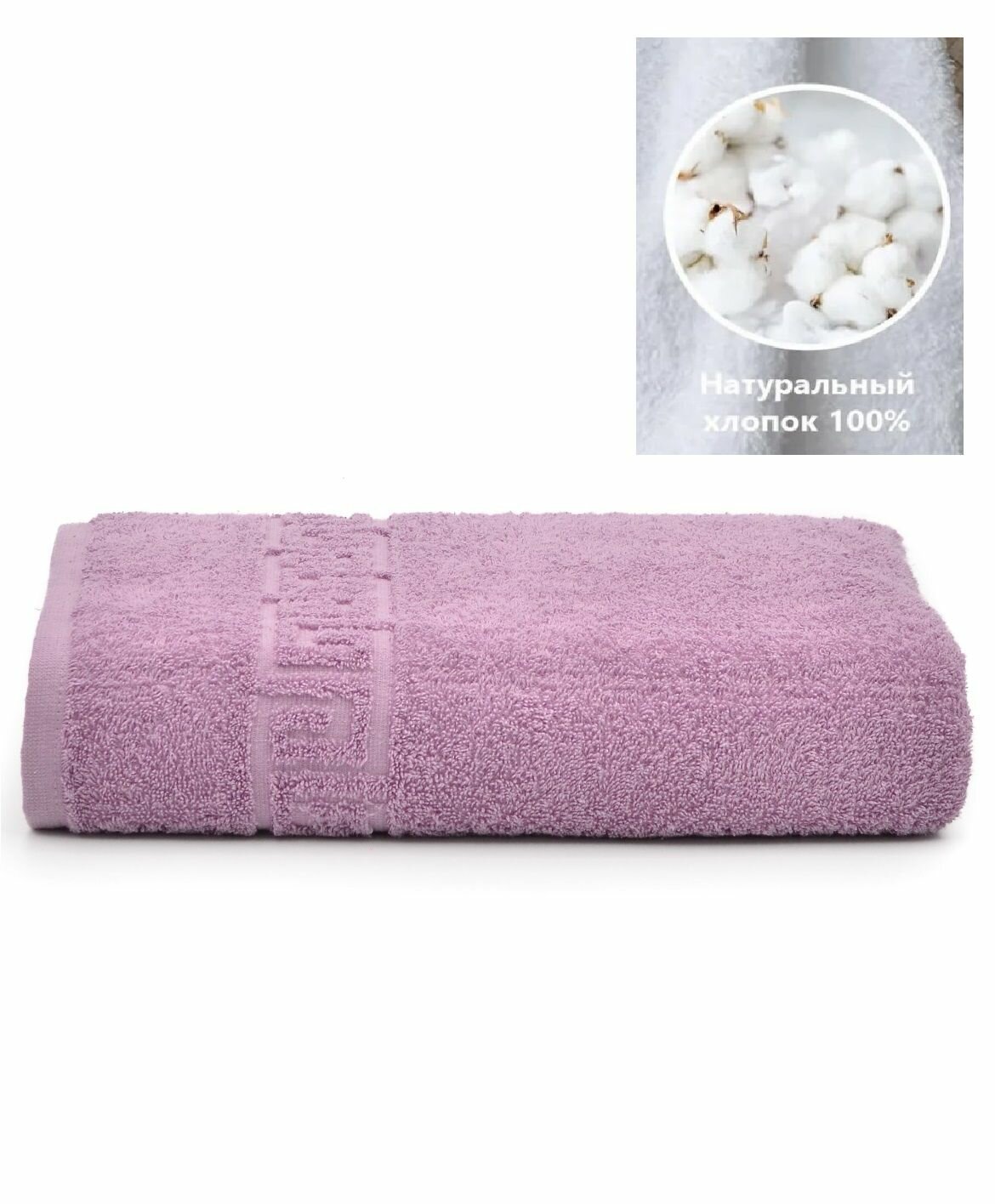Полотенце банное махровое розовое с греческим бардюром 70х140 см / Плотность 430 гр/м2 / 100% хлопок / Подарок / Ашхабадский текстильный комплекс