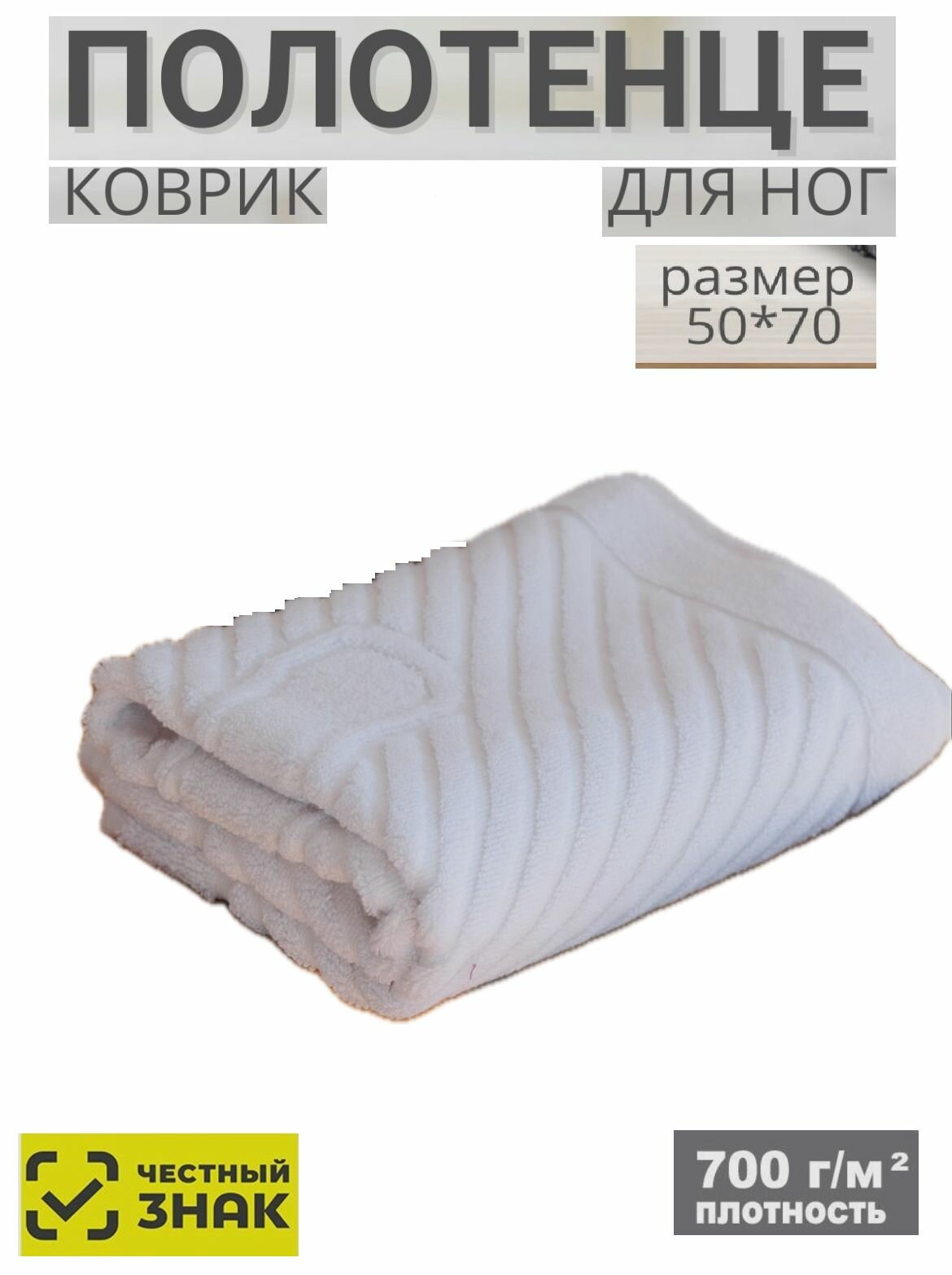 Купить Полотенце-коврик для ног белое 50х70 см / Хлопок 100%/ Плотность 700 гр/м2 / Подарок / Ашхабадский текстильный комплекс