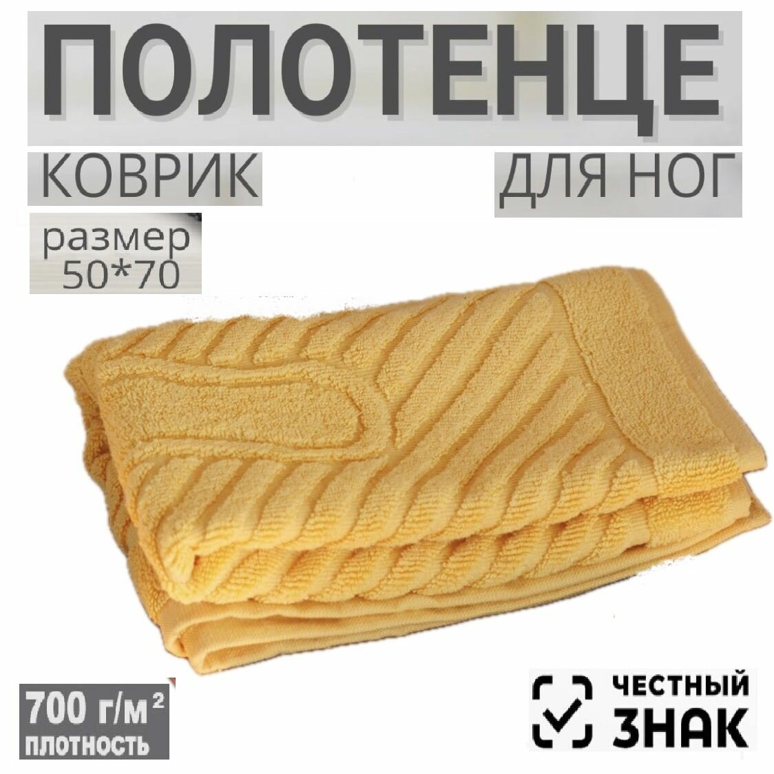 СохранитьПолотенце-коврик для ног желтое 50х70 см / Хлопок 100%/ Ашхабадский текстильный комплекс интересное:
