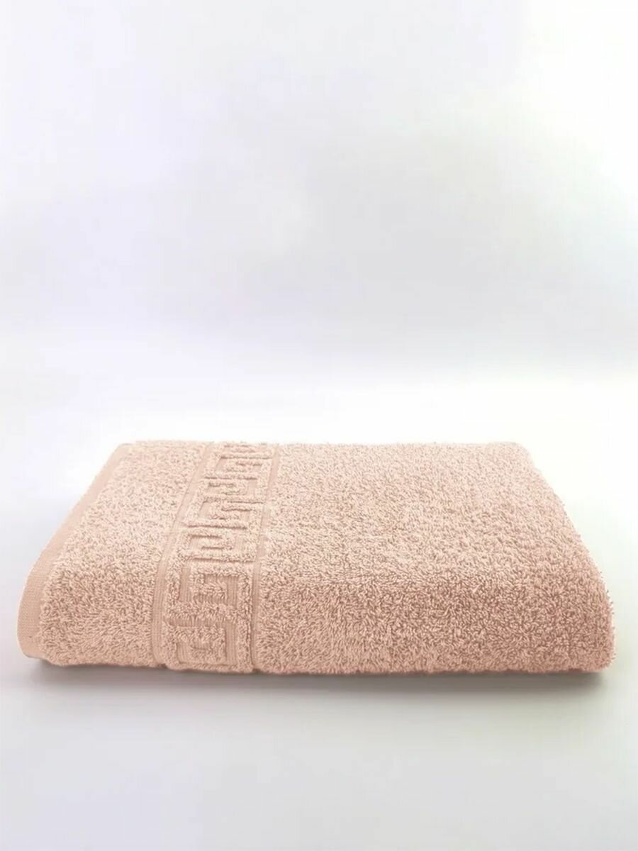 Полотенце банное махровое розовое с греческим бардюром 70х140 см / Плотность 430 гр/м2 / 100% хлопок / Подарок / Ашхабадский текстильный комплекс