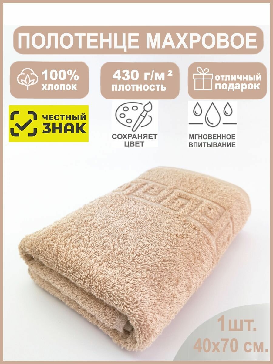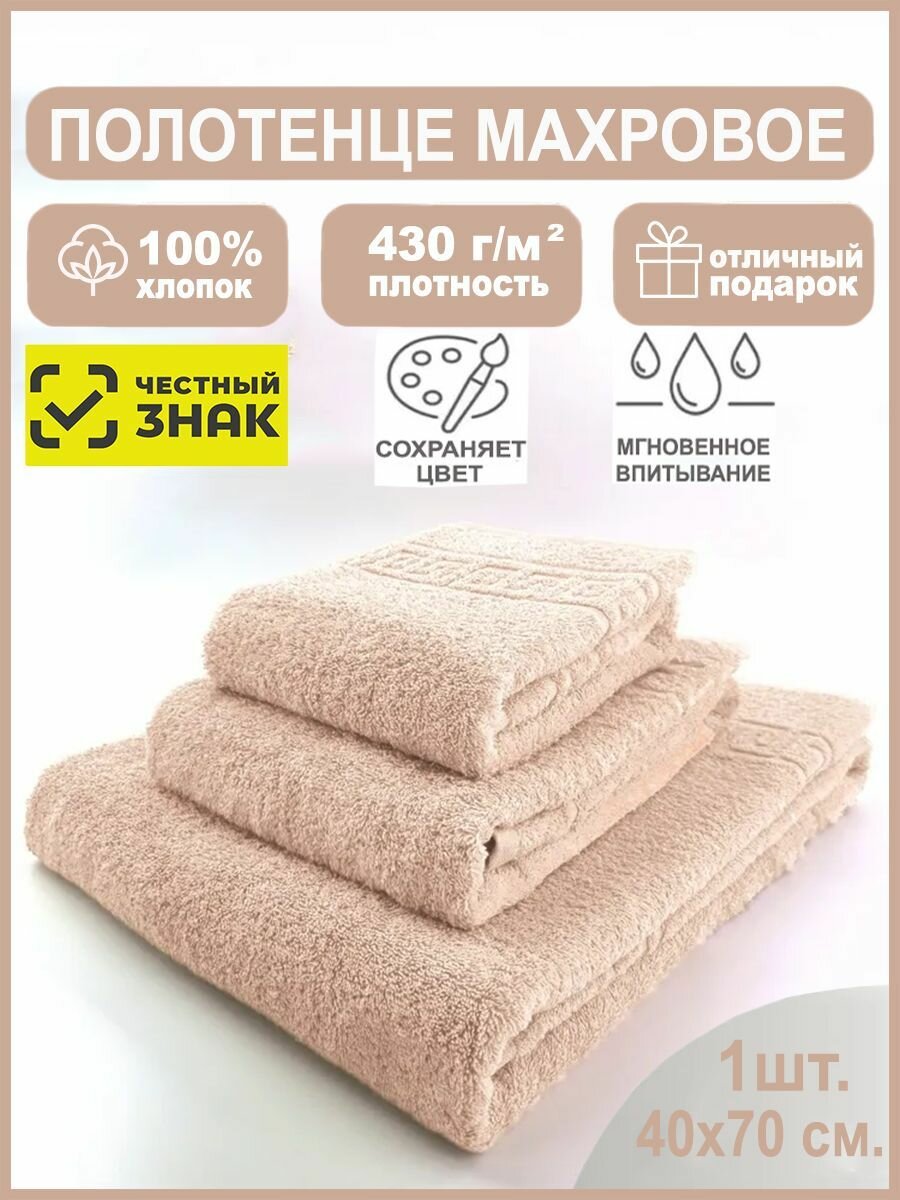 Купить Полотенце махровое бежевое / Для лица, рук, волос, ванны, кухни, бани, пляжа, аквапарка, бассейна / 40х70 см / Плотность 430 гр/м2 / 100% хлопок / Подарок / Ашхабадский текстильный комплекс