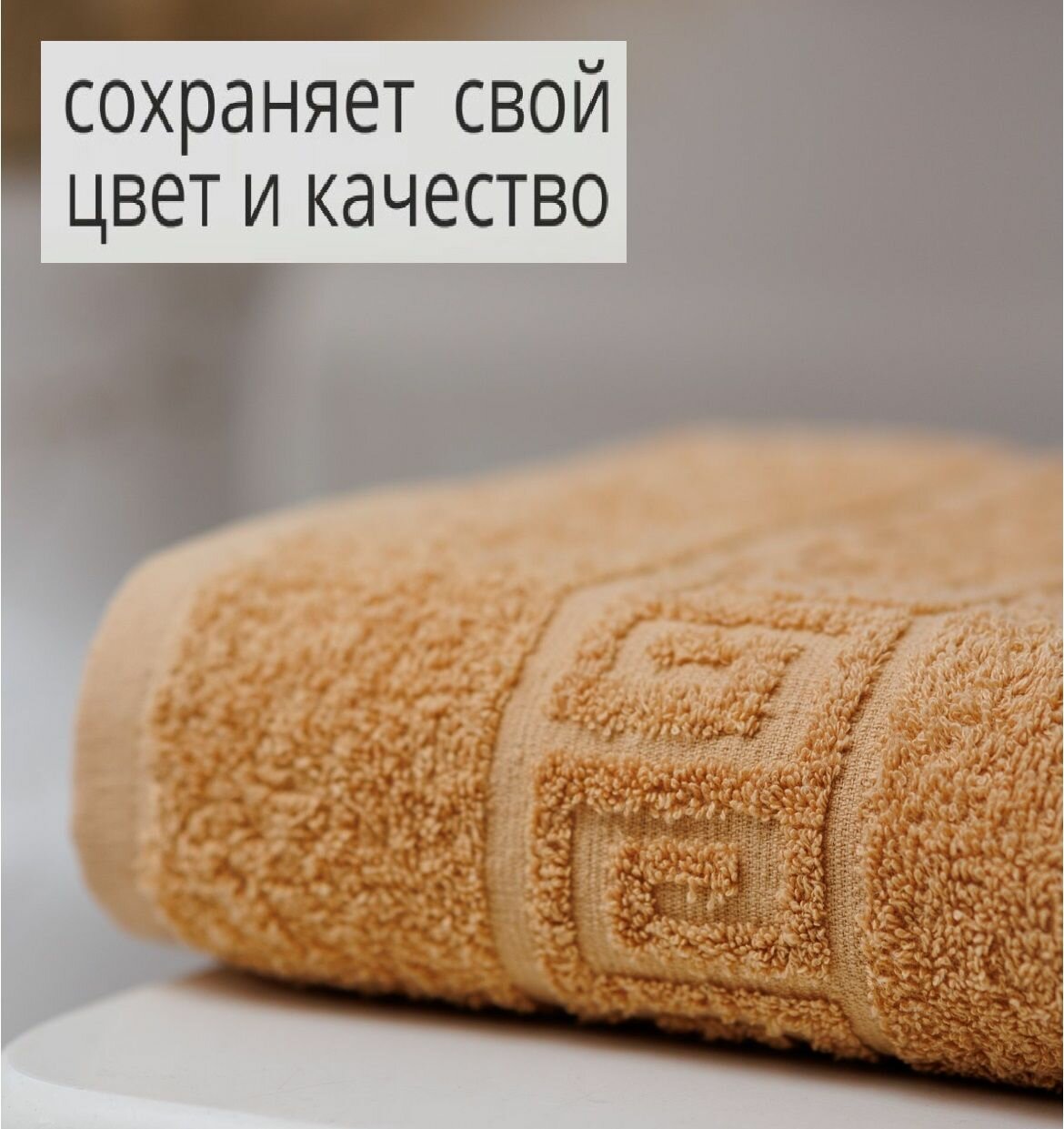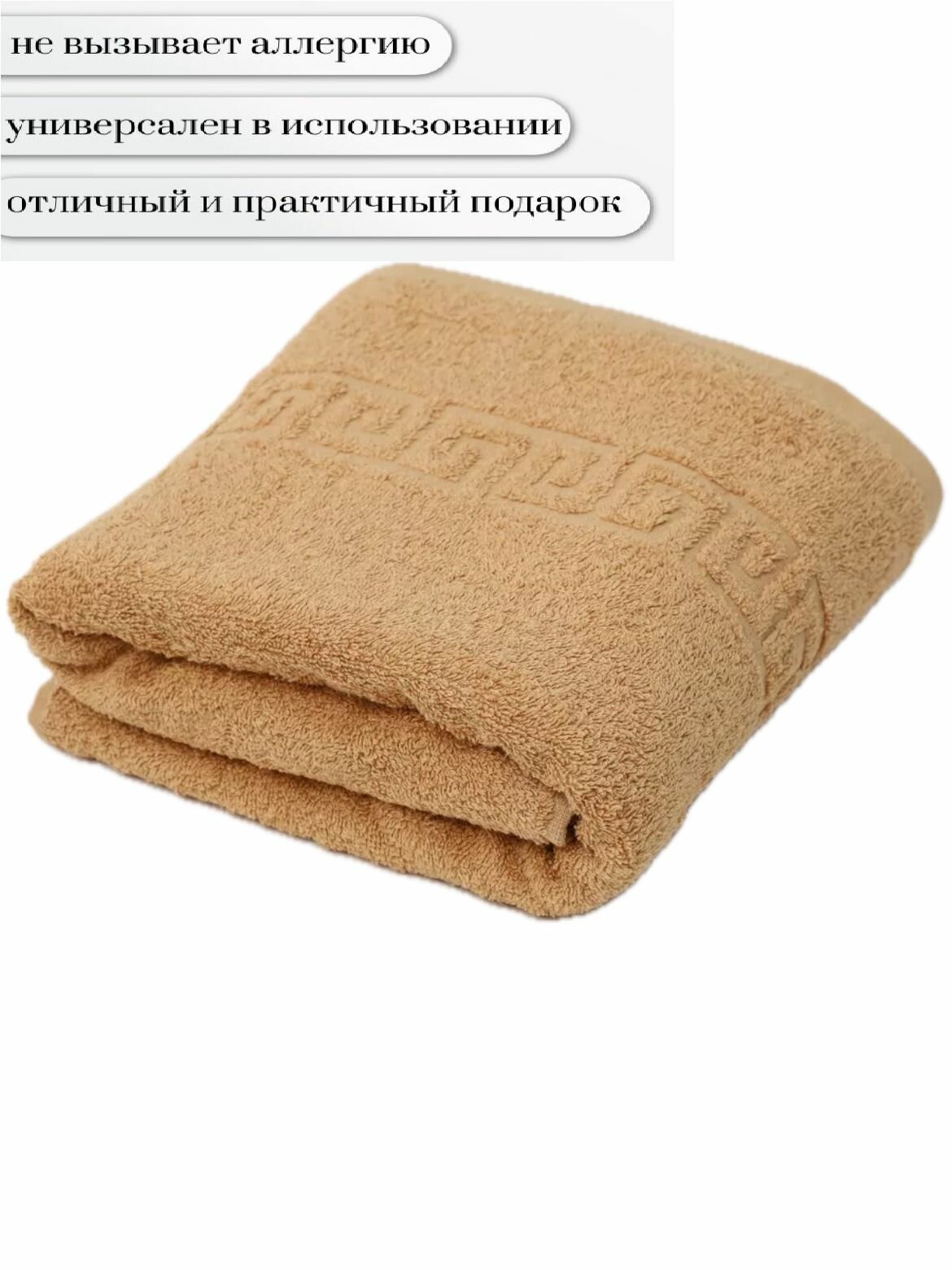 Полотенце банное махровое золотистый желтый с греческим бардюром 70х140 см / Плотность 430 гр/м2 / 100% хлопок / Подарок / Ашхабадский текстильный комплекс
