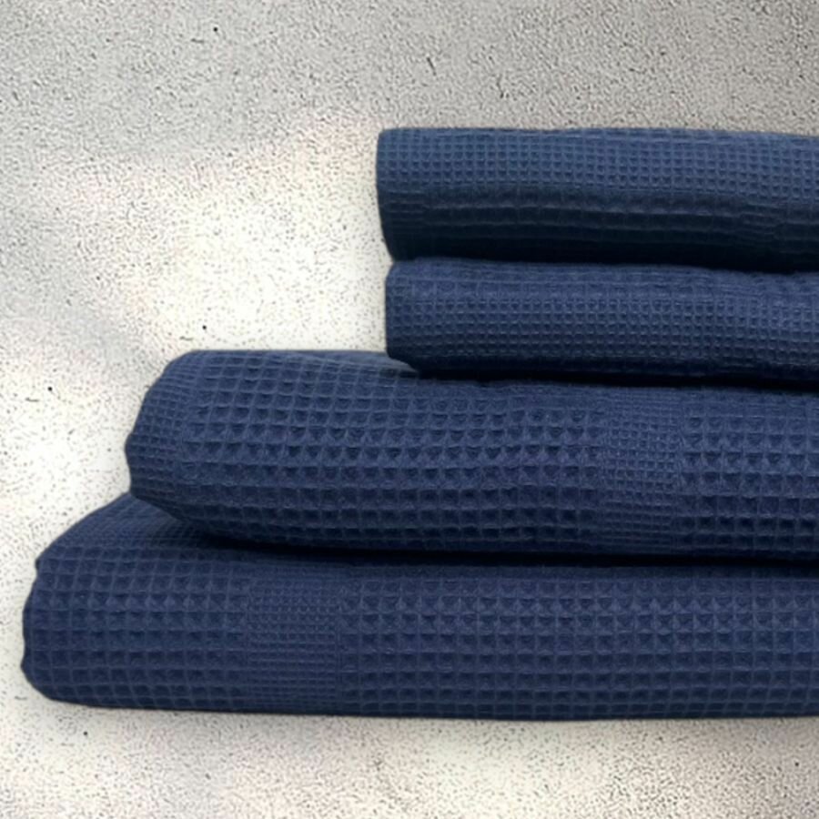 Купить Полотенце банное вафельное набор 4 штуки (150х100см+ 65х135см+35х75см+35х75см) темно-синий