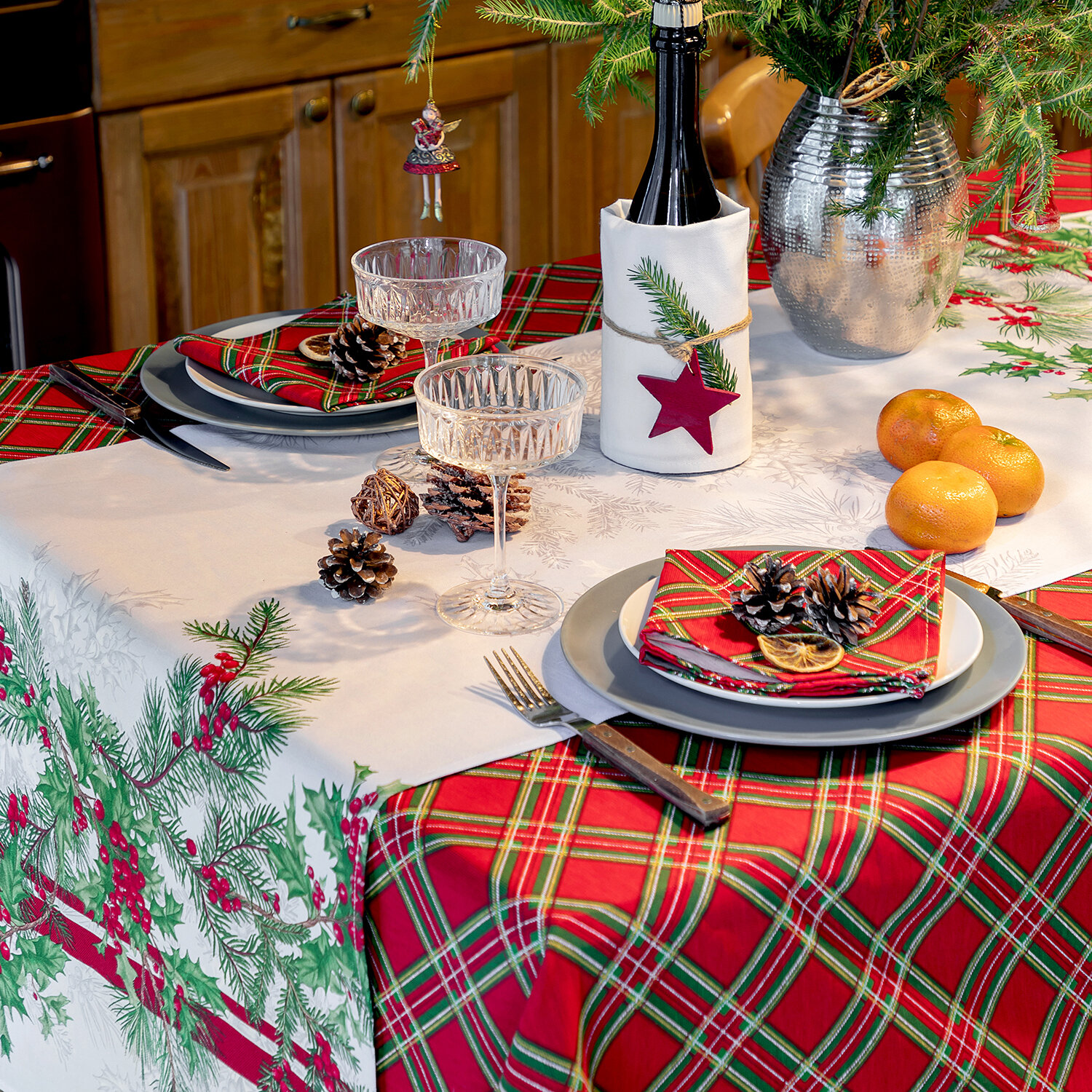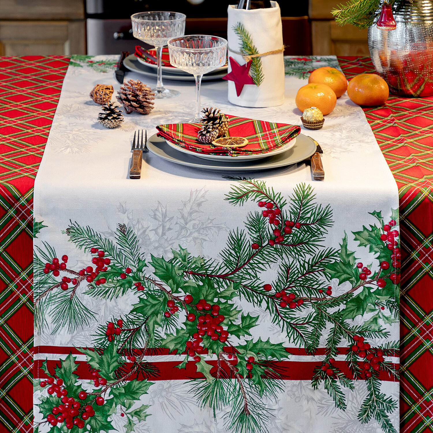 Скатерть рогожка 145х240 "Mia Cara" рис 30567-1 Зимние гранаты
