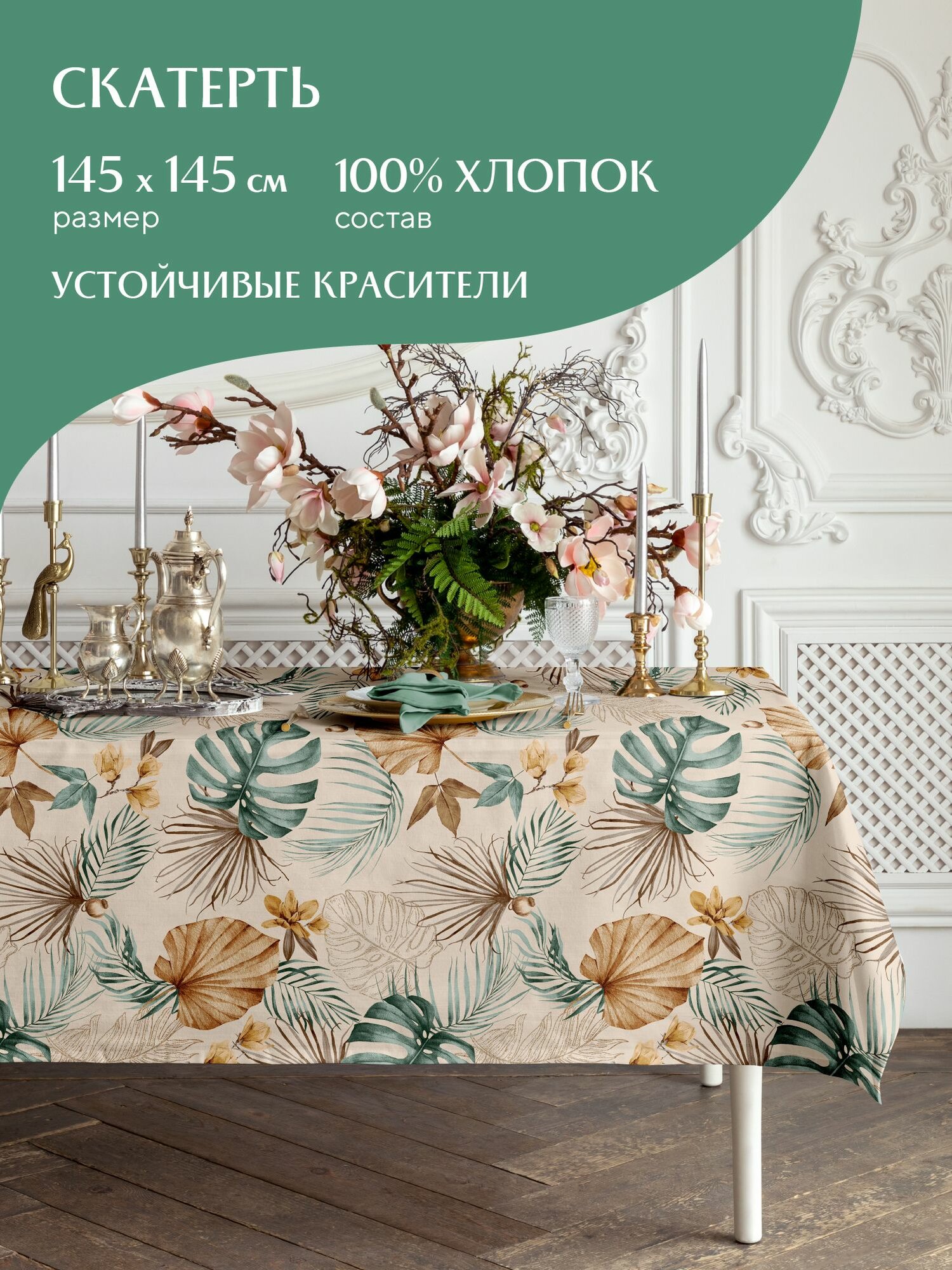 Купить Скатерть рогожка 145х145 "Mia Cara" рис 30662-2 Tropical palm