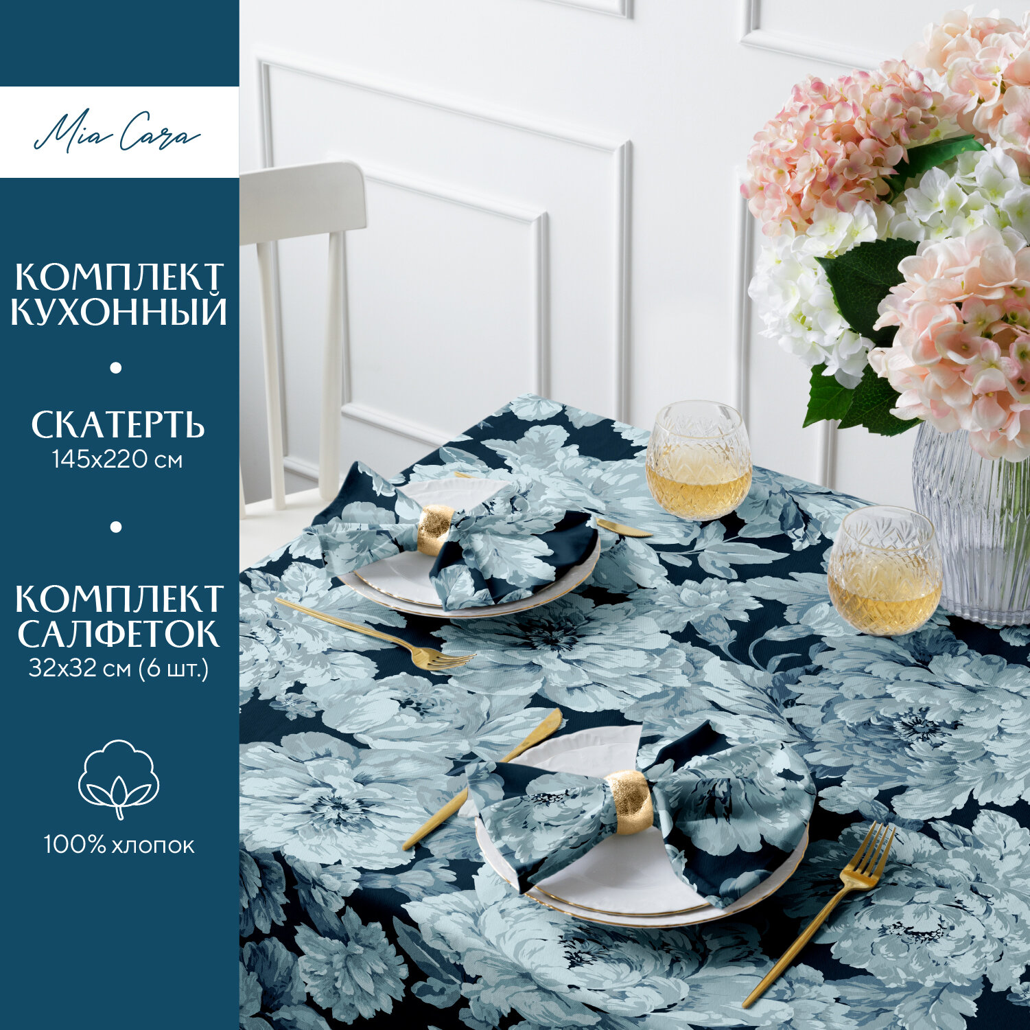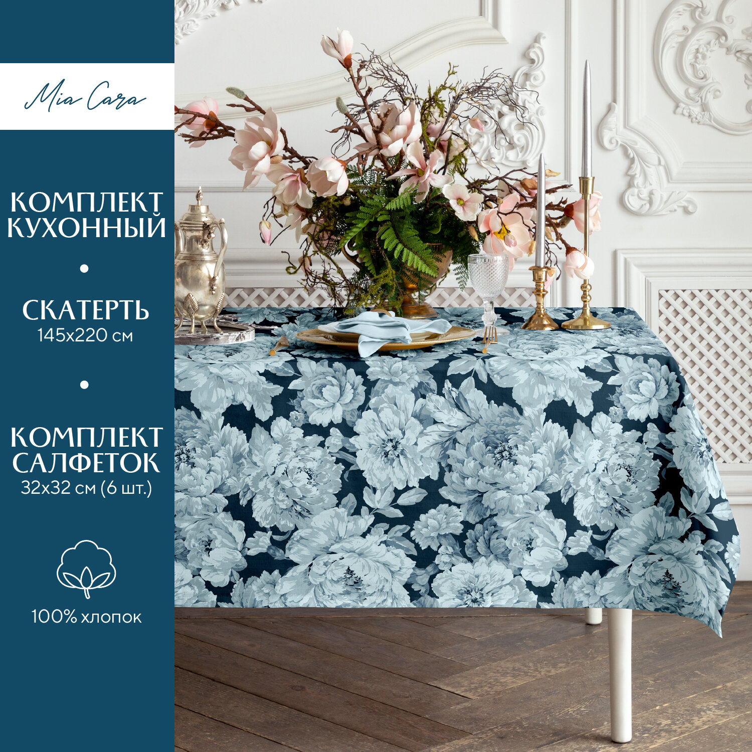 Комплект скатерть 145х220 + 6 салфеток 32х32 "Mia Cara" 14056-1/14057-1 Душистый пион