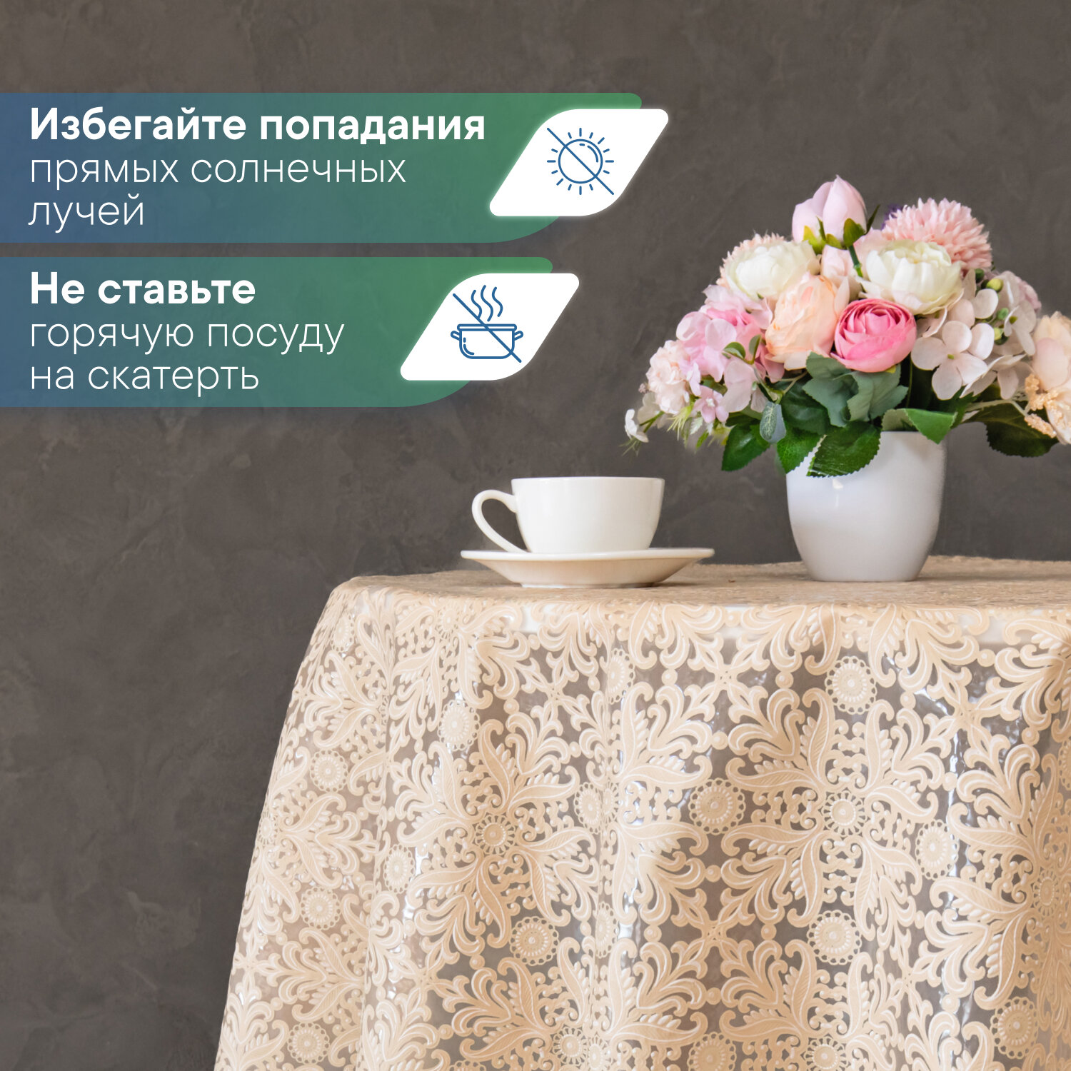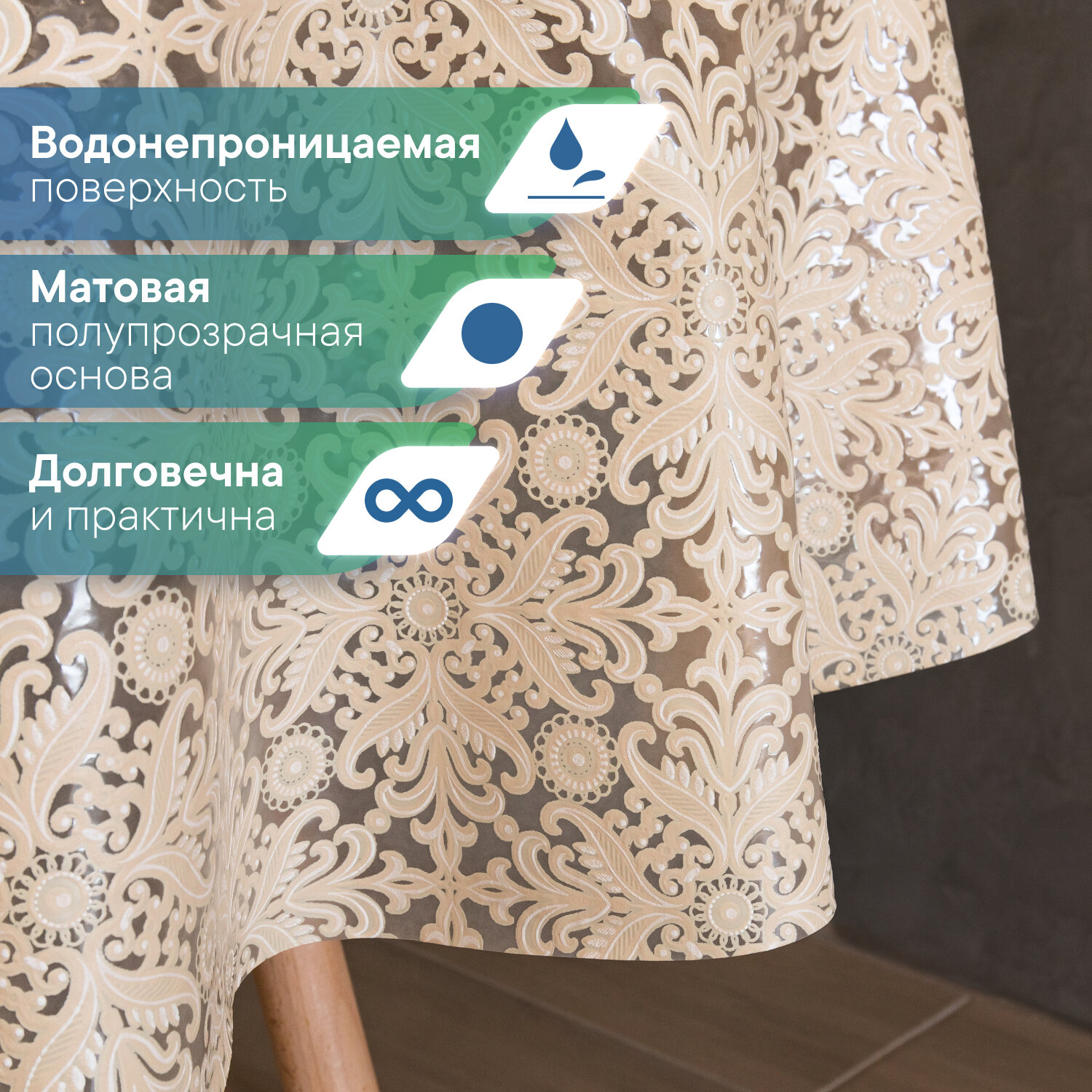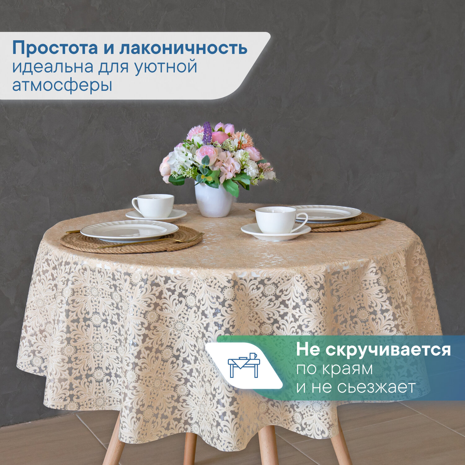 Скатерть круглая клеенка на стол ПВХ VILINA "Элегия" диаметр 128 см. водонепроницаемая с узором / скатерть праздничная белая 016-beige