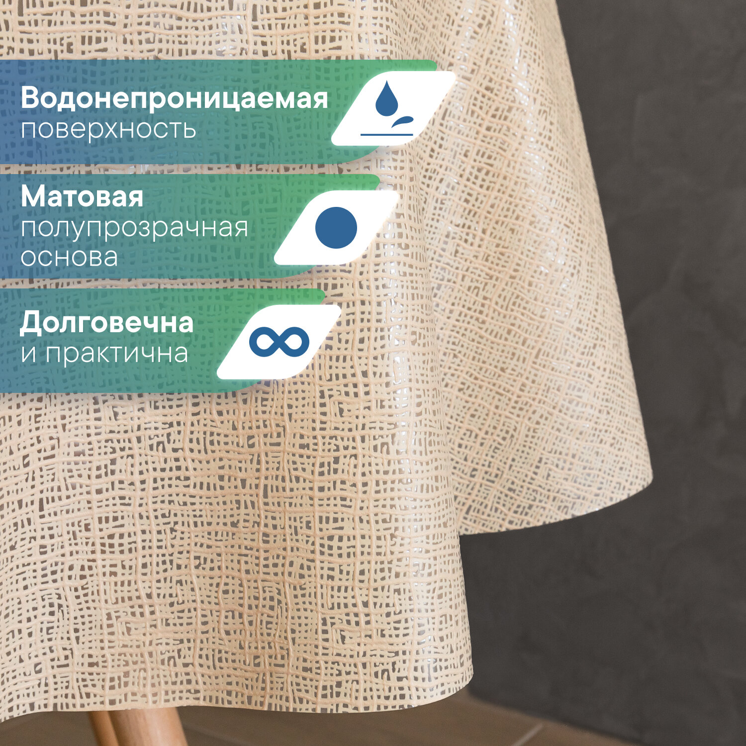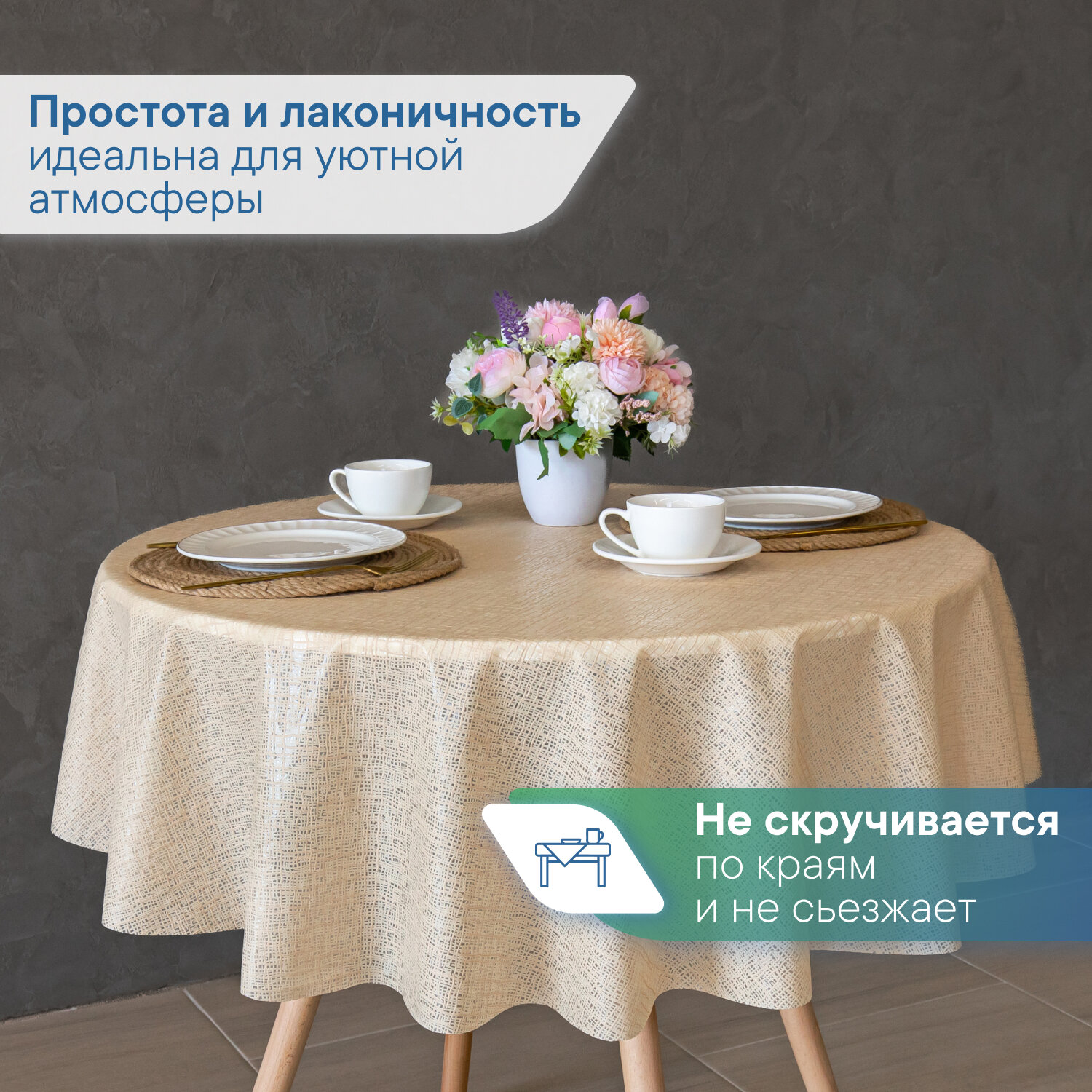 Скатерть круглая клеенка на стол ПВХ VILINA "Элегия" диаметр 128 см. водонепроницаемая с узором / скатерть праздничная белая 005-beige