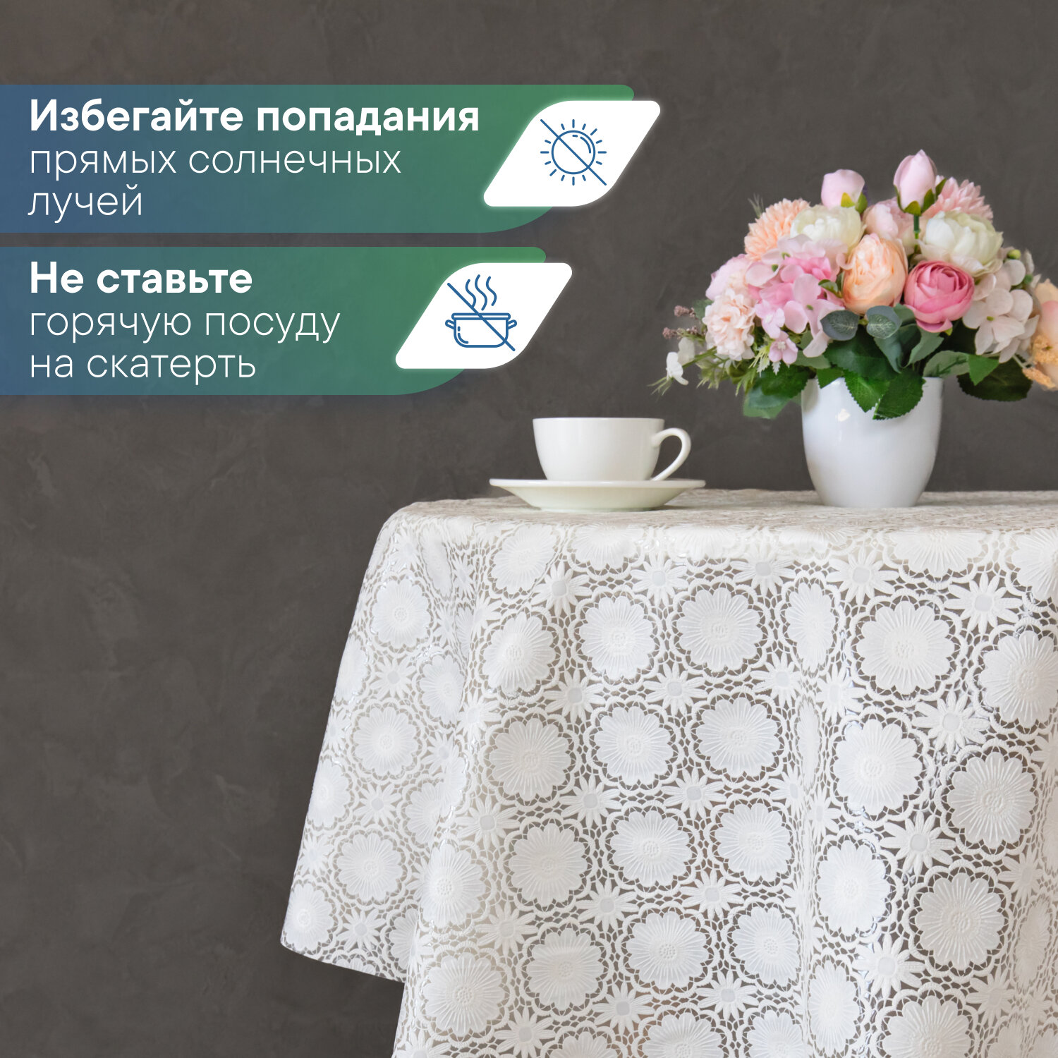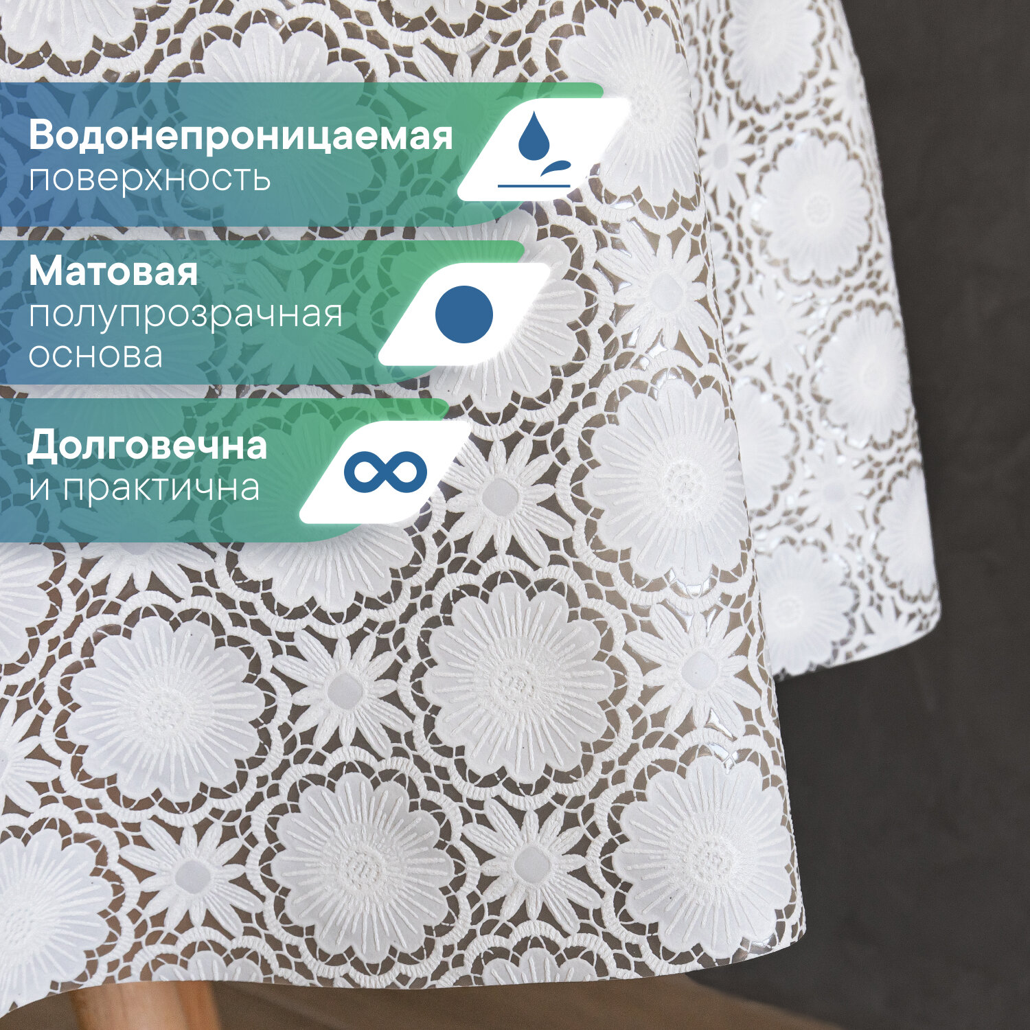 СохранитьСкатерть круглая клеенка на стол ПВХ VILINA "Элегия" диаметр 128 см. водонепроницаемая с узором / скатерть праздничная белая 005-white интересное: