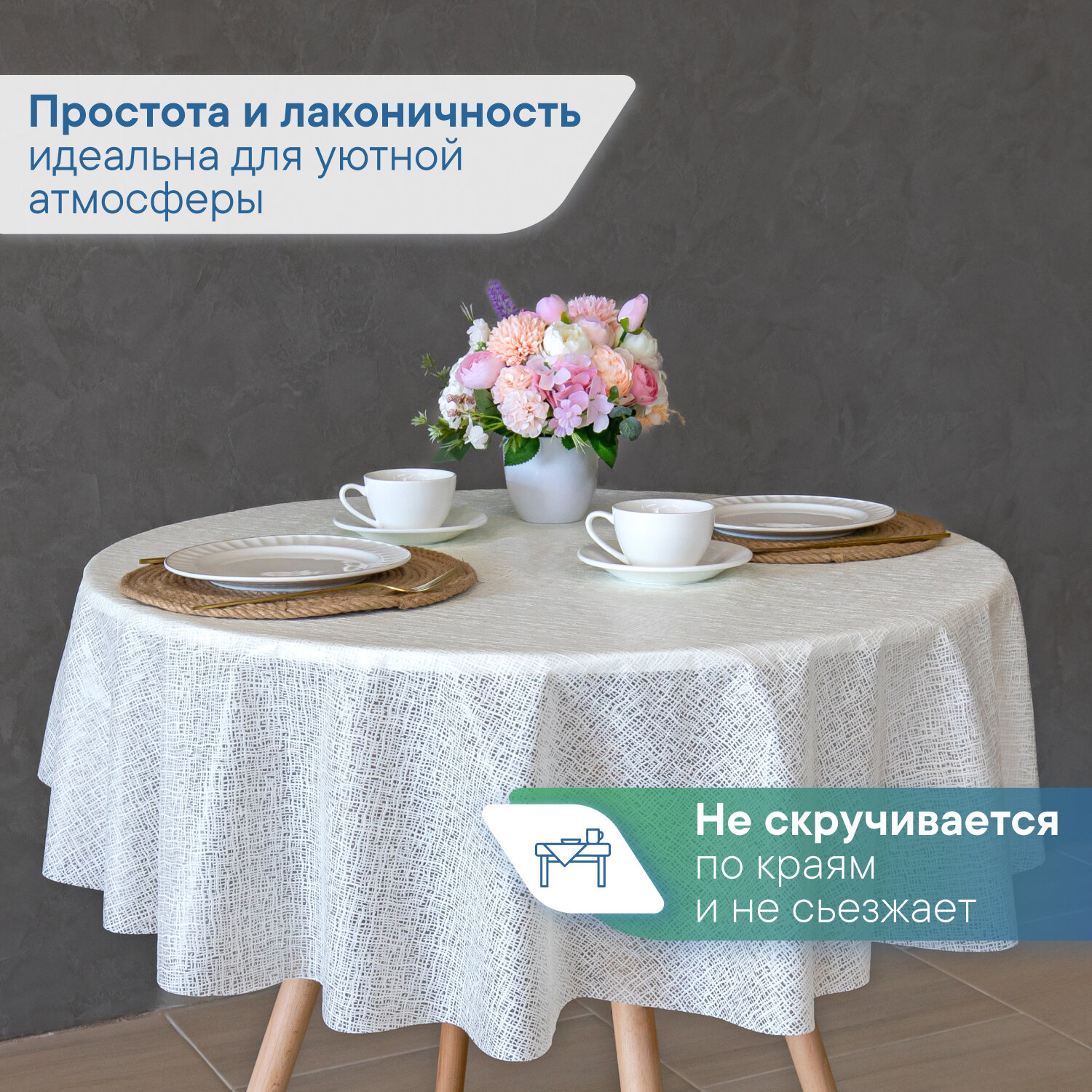 СохранитьСкатерть круглая клеенка на стол ПВХ VILINA "Элегия" диаметр 128 см. водонепроницаемая с узором / скатерть праздничная белая 016-white интересное: