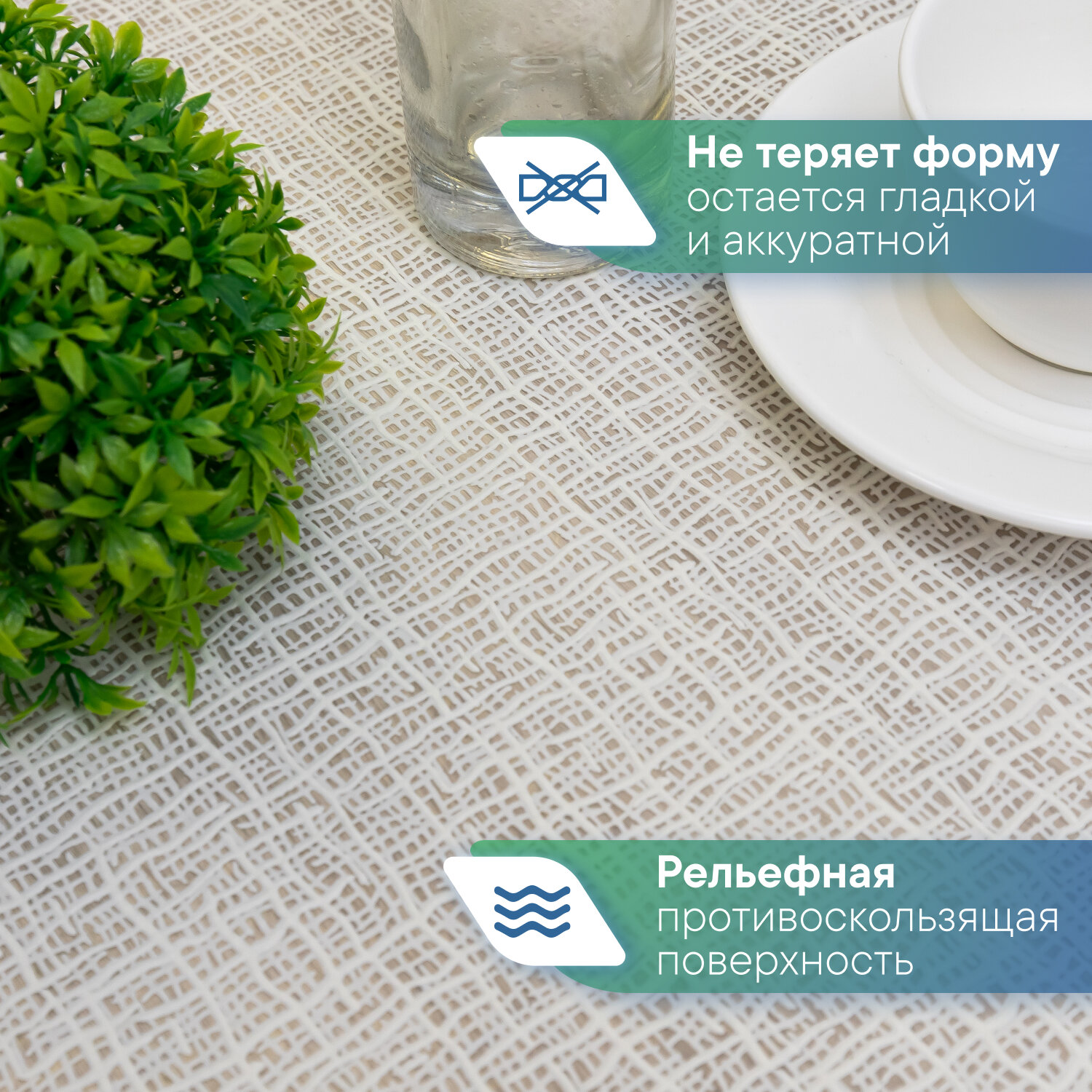 | Особенности | антискользящее покрытие / водоотталкивающая пропитка / пятнозащитная пропитка / термостойкость |