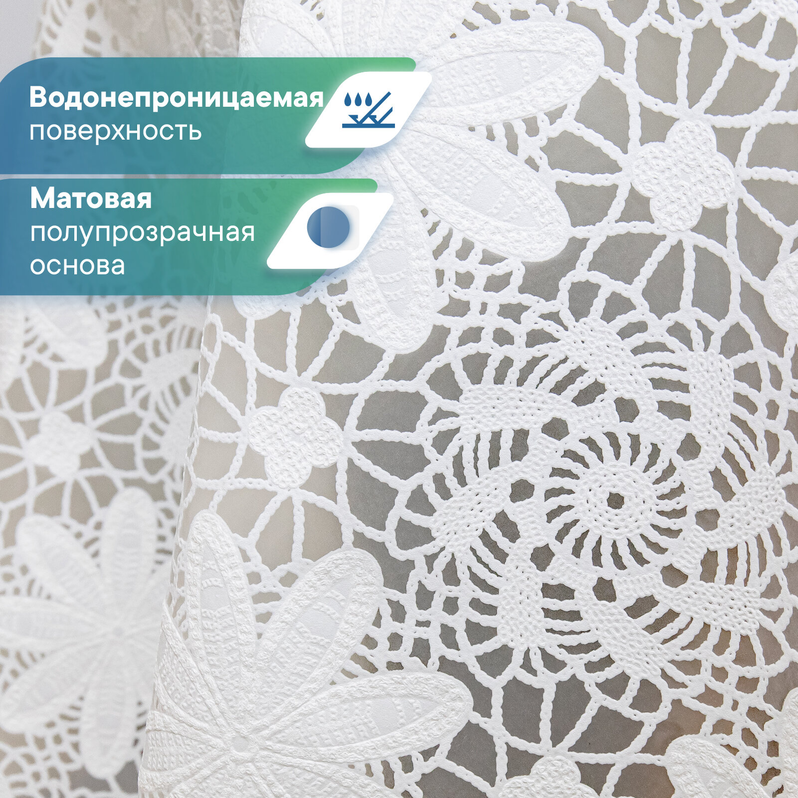 Скатерть круглая клеенка на стол ПВХ VILINA "Элегия" диаметр 128 см. водонепроницаемая с узором / скатерть праздничная белая 010-white