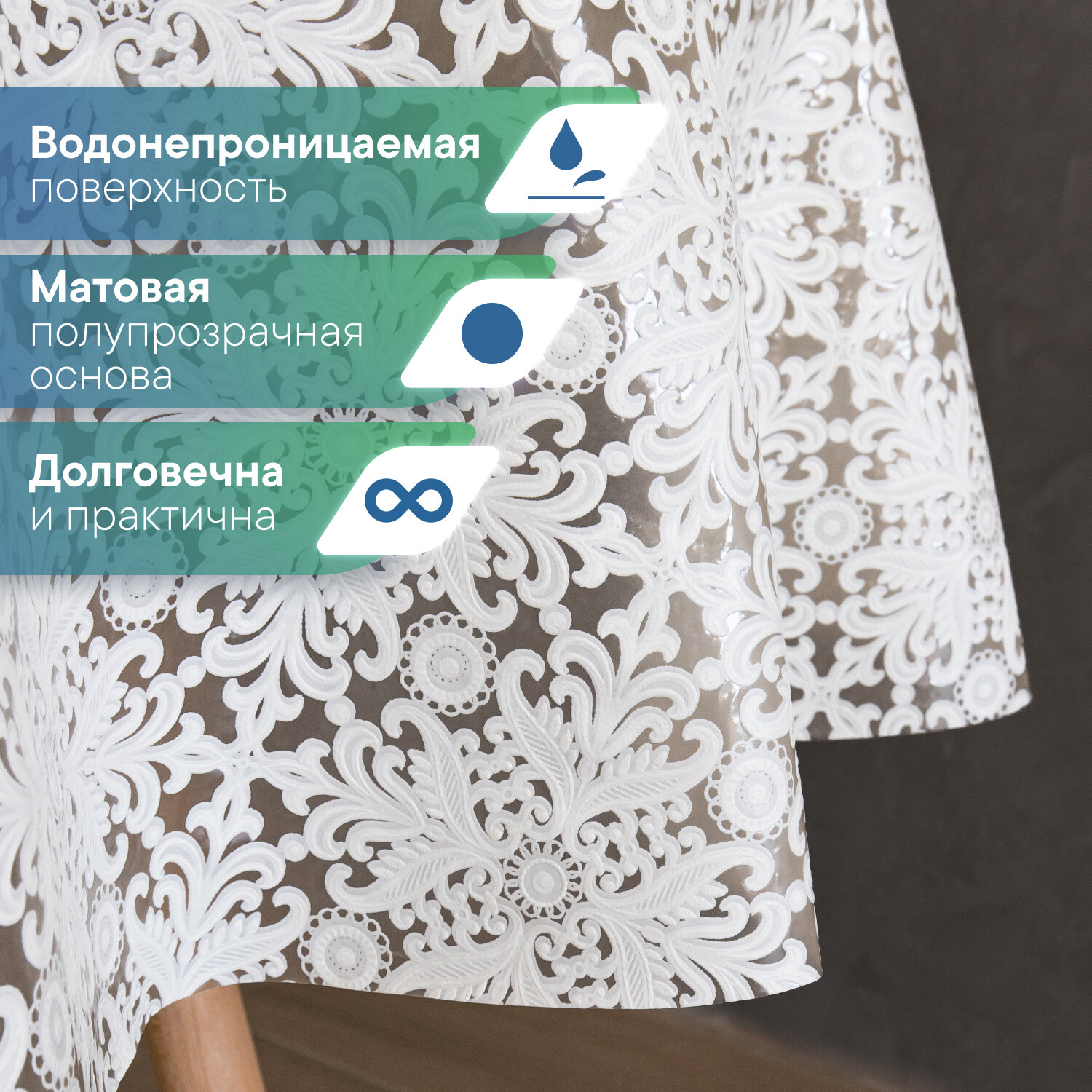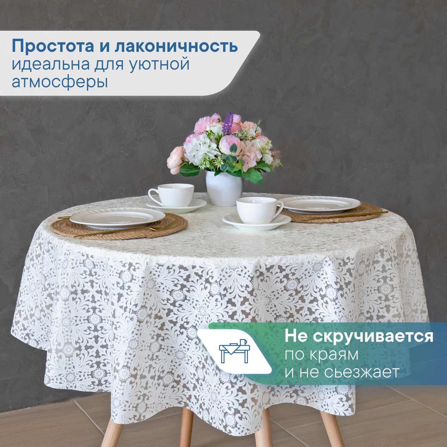 СохранитьСкатерть круглая клеенка на стол ПВХ VILINA "Элегия" диаметр 128 см. водонепроницаемая с узором / скатерть праздничная белая 014-white интересное: